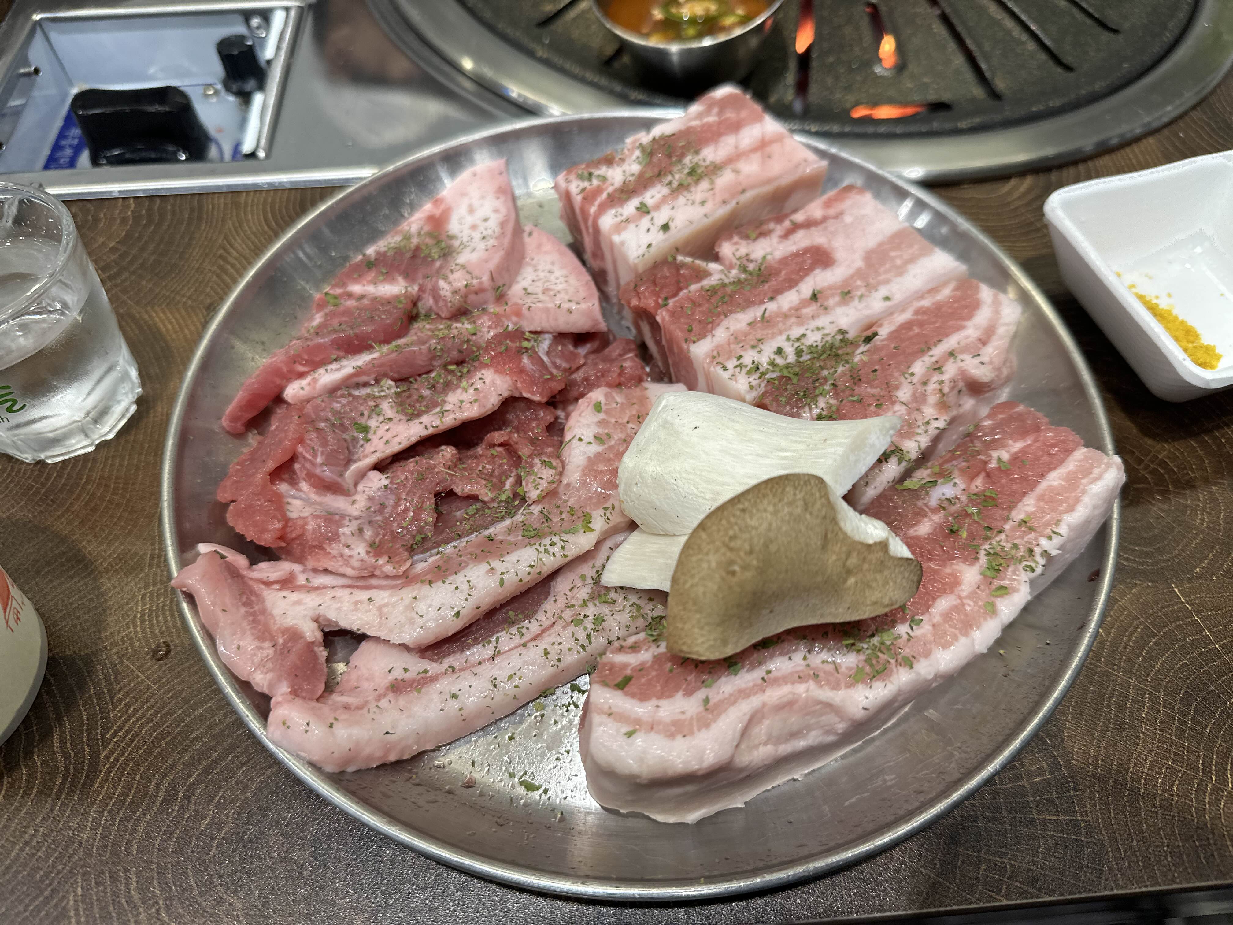 삼겹살과 뒷통특수모듬부터 먹기 좋게 올려서