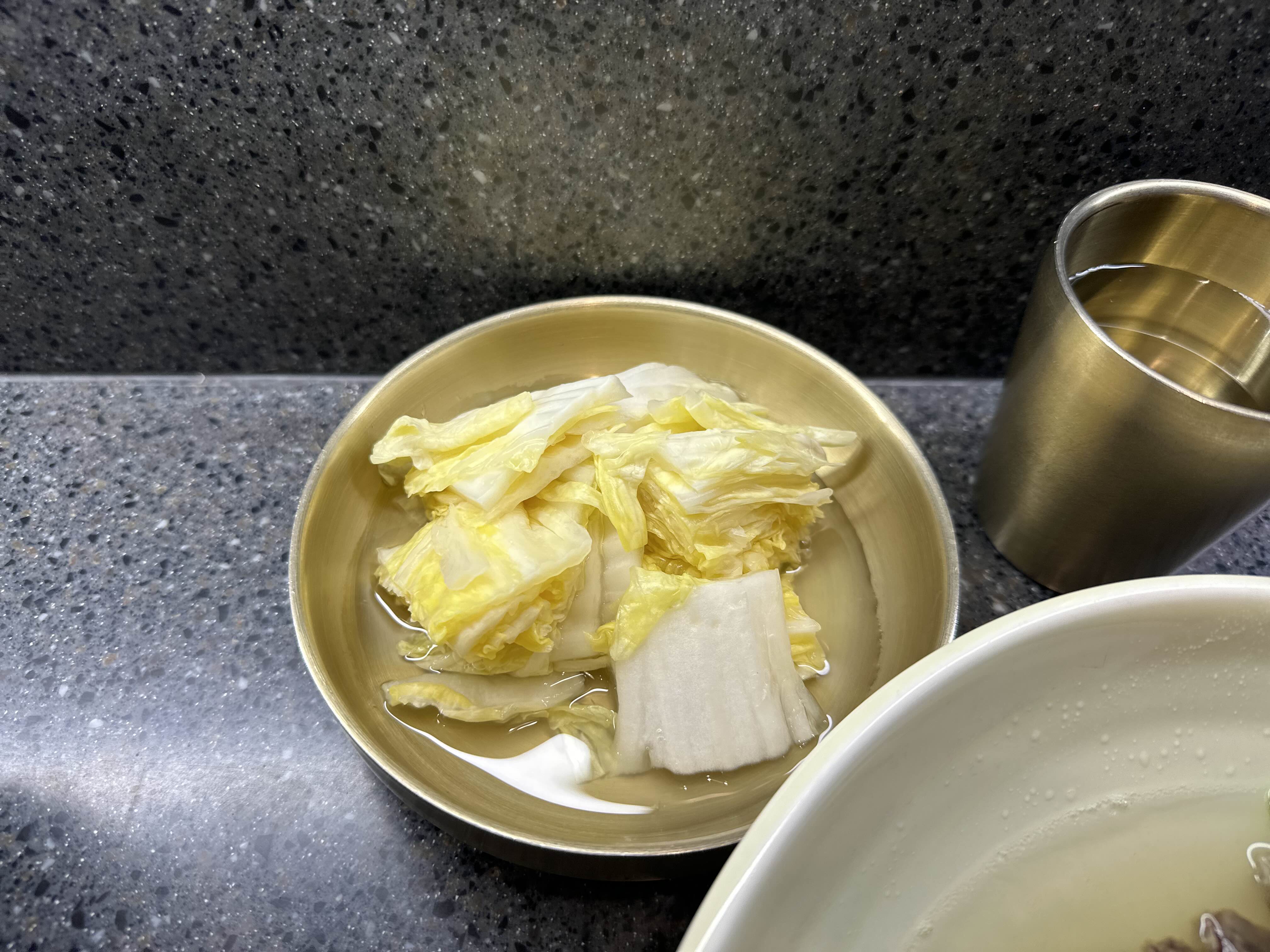 고기고명 아래에는 무와 오이가 꽤 많이 들어있지만