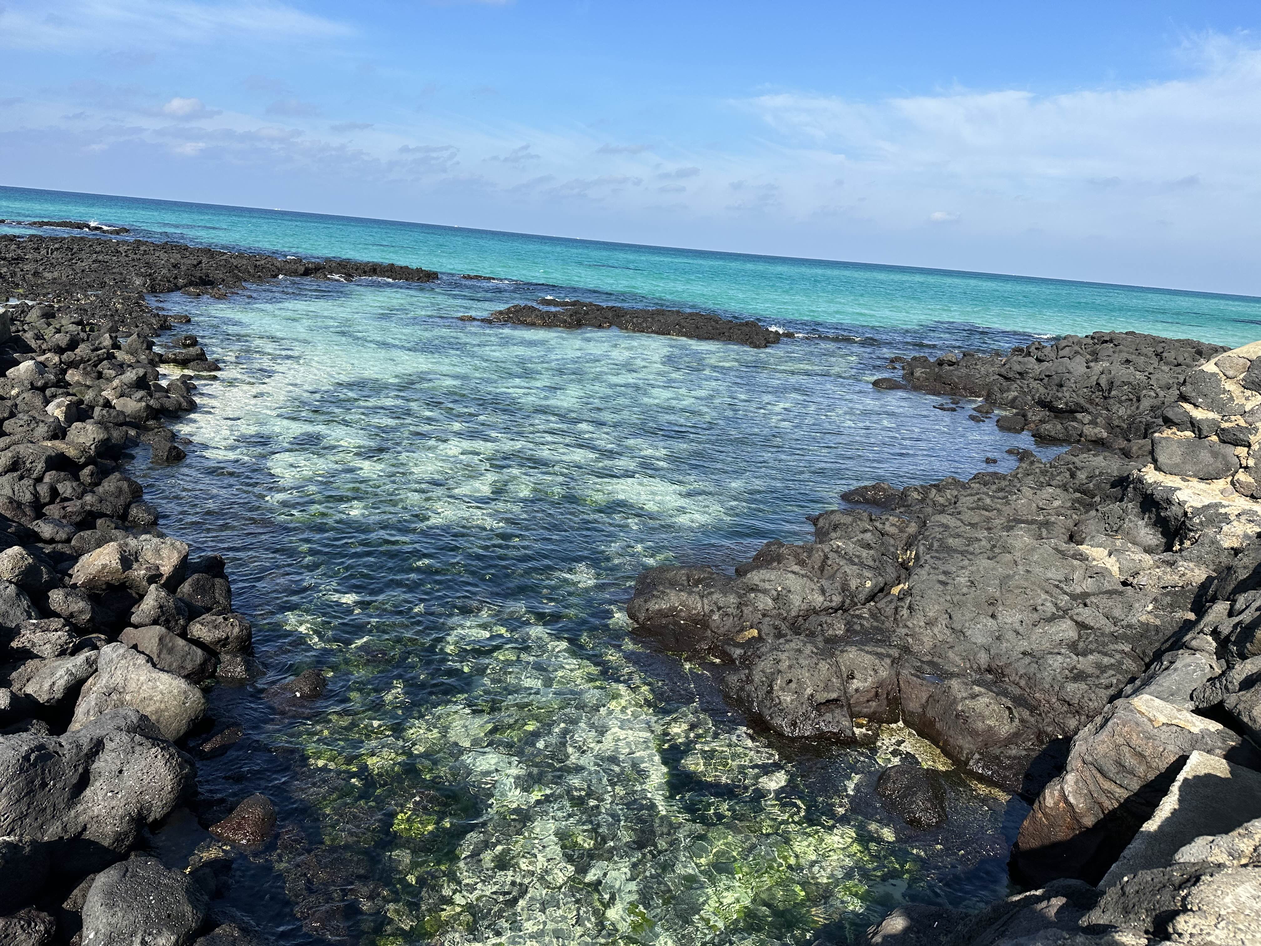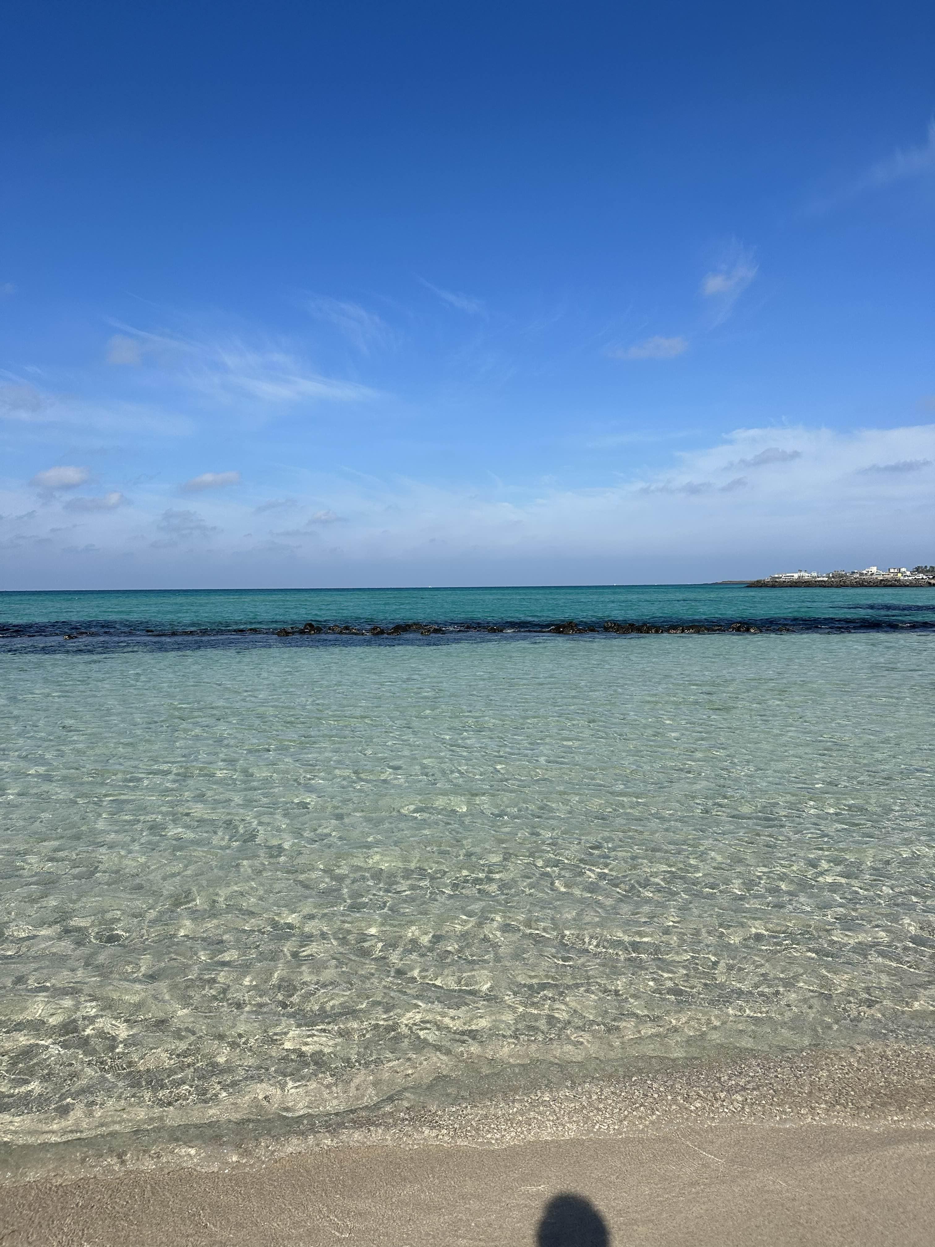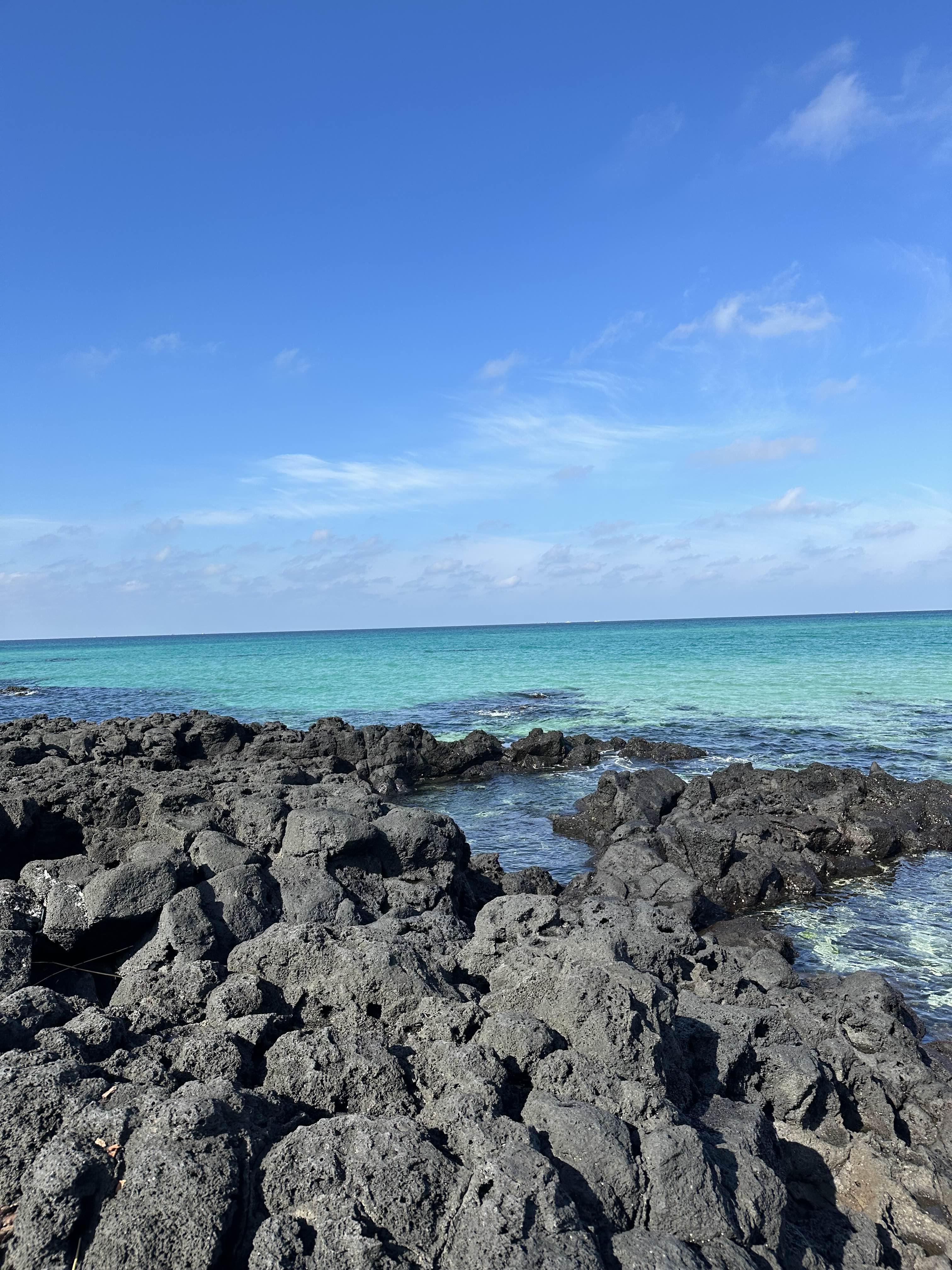 맑은 날씨에 에메랄드 빛 바다를 보니 행복했습니다.