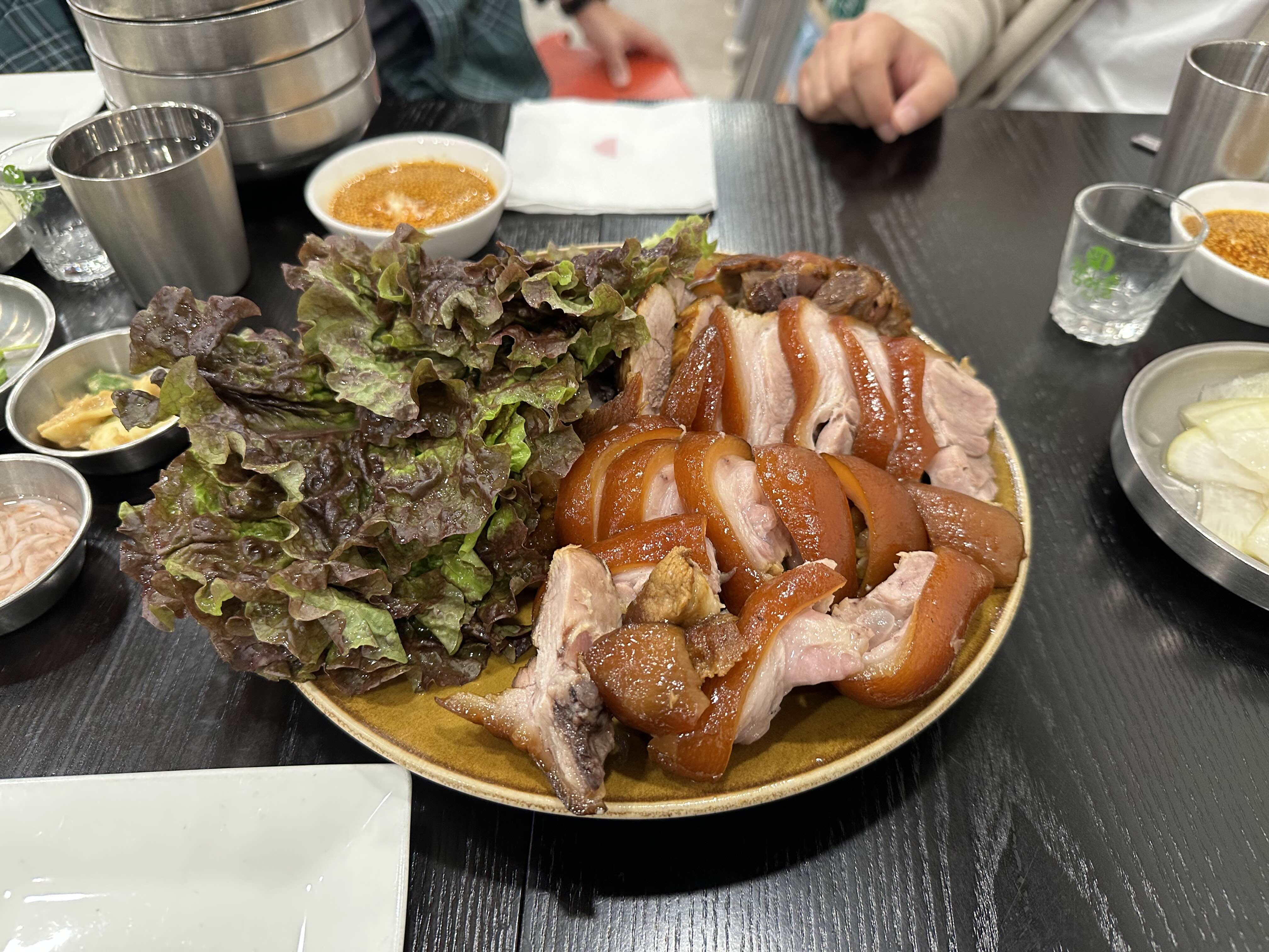 족발에는 상추가 같이 있어 쌈을 싸먹을수도 있습니다. 양이 적어보이지만 하나하나 두껍게 썰려 그렇게 적지는 않습니다. 한돈 앞다리를 삶아 내어주는 족발은 껍데기 쪽에서 윤기가 좌르르 흐릅니다. 족발은 다른 여러 재료를 섞지 않아 한약맛 등이 나지 않고 깔끔한 돼지 족발 그 자체로 쫄깃한 식감과 맛이 모두 좋아 개인적으로 상당히 맛있었습니다.