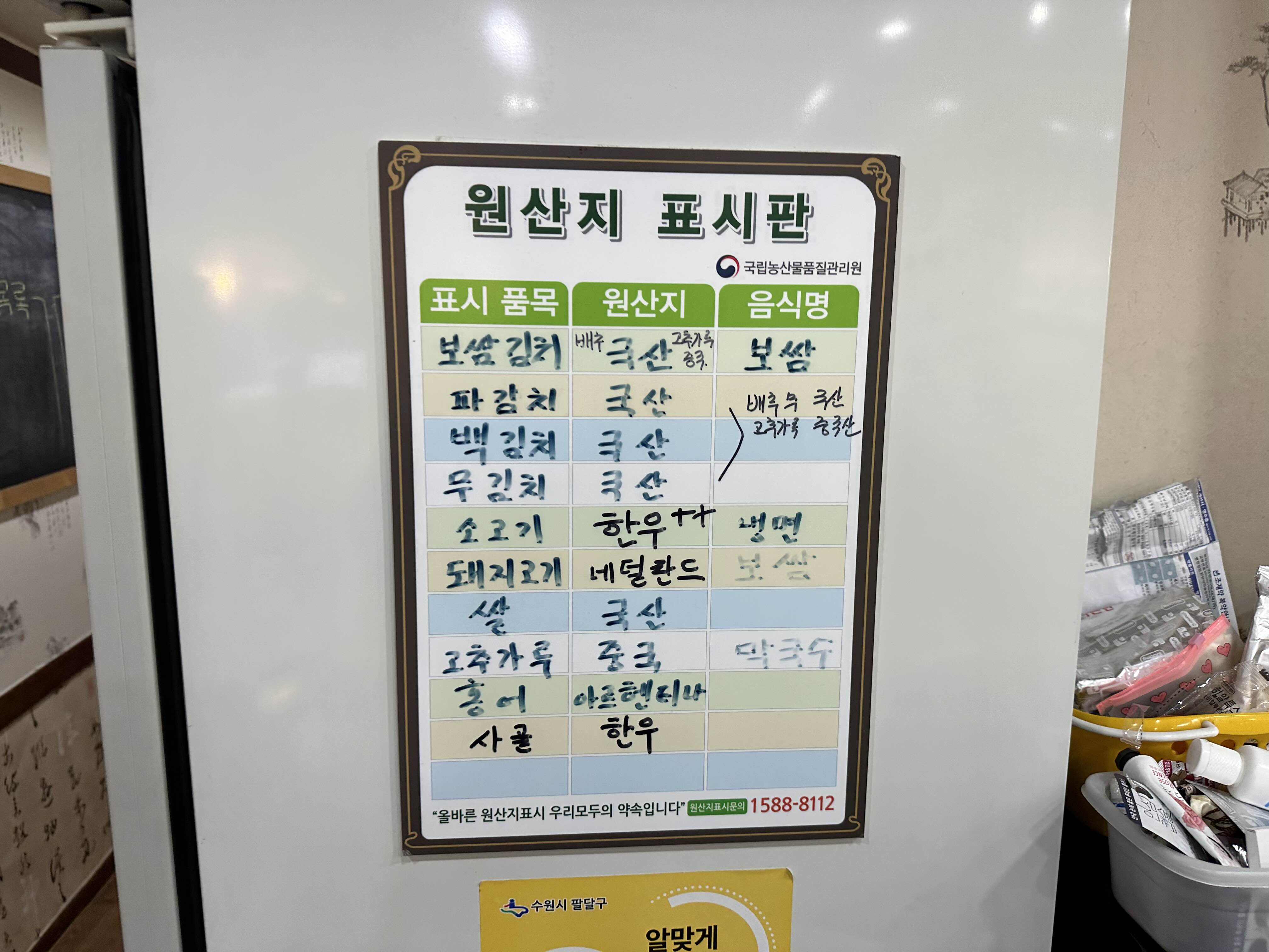 정말 평양냉면에 진심인 원산지 표시판입니다.