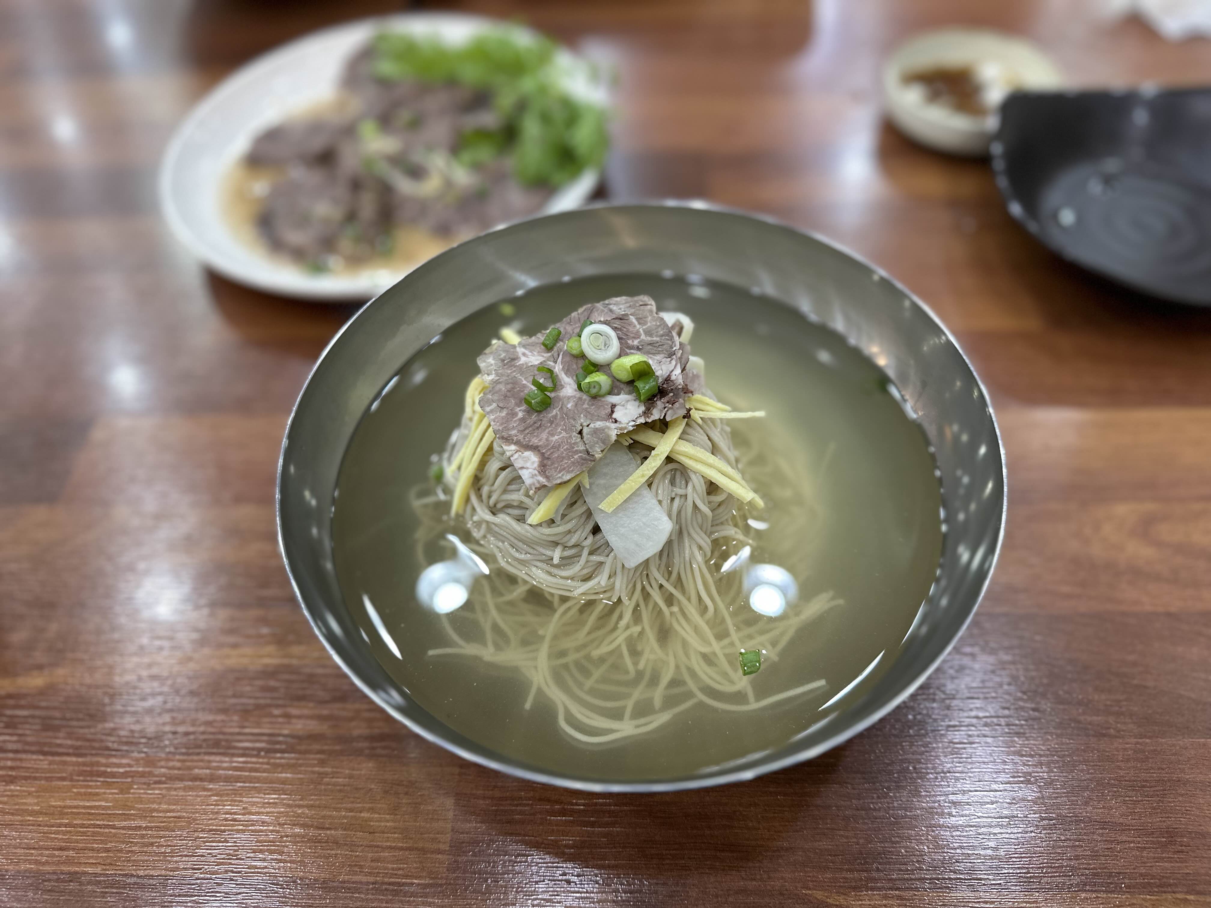 1++ 한우 육수와 순 메밀면이 12,000원이라는 가격은 매우 합리적입니다. 한우 암소 투쁠 수육도 가격이 괜찮아서 평양냉면과 한우암소 투쁠수육을 주문했습니다.