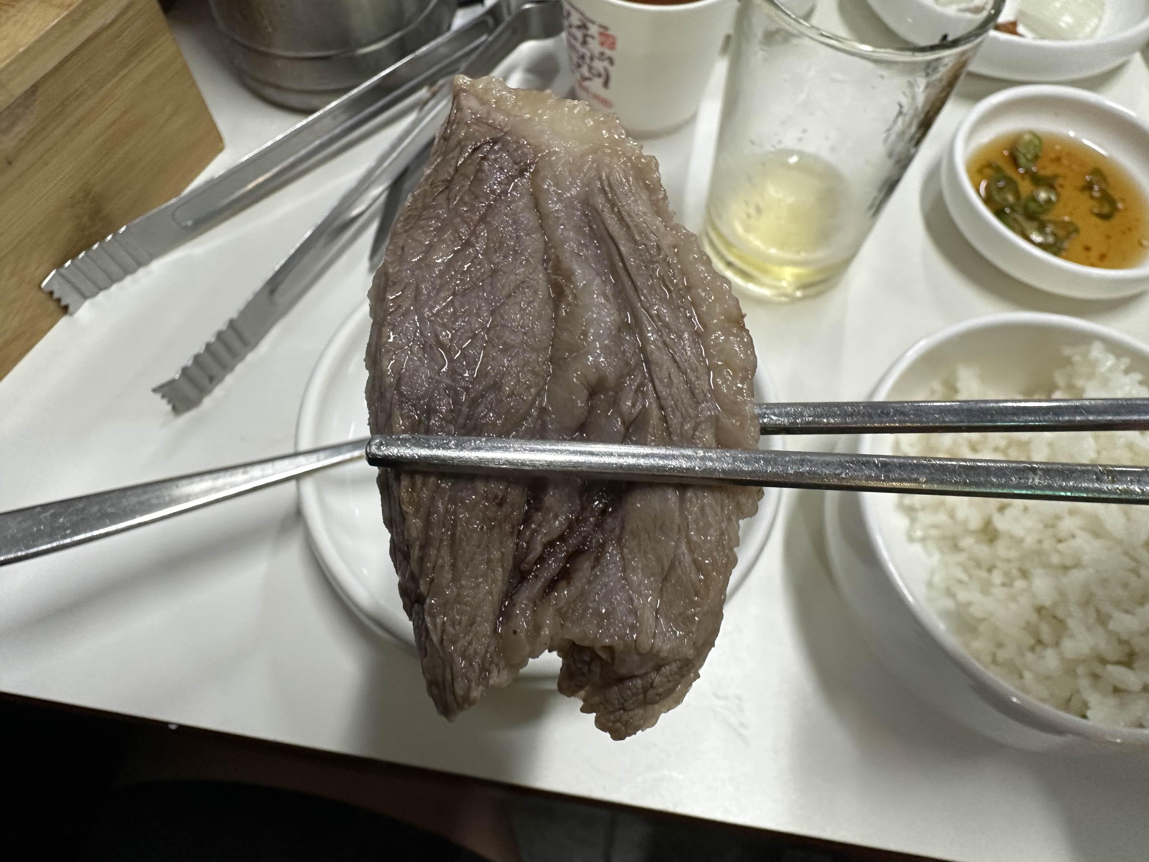 큼지막한 한우수육 중짜리가 나왔습니다. 양지부위와 차돌박이 두점이 올라가있습니다.