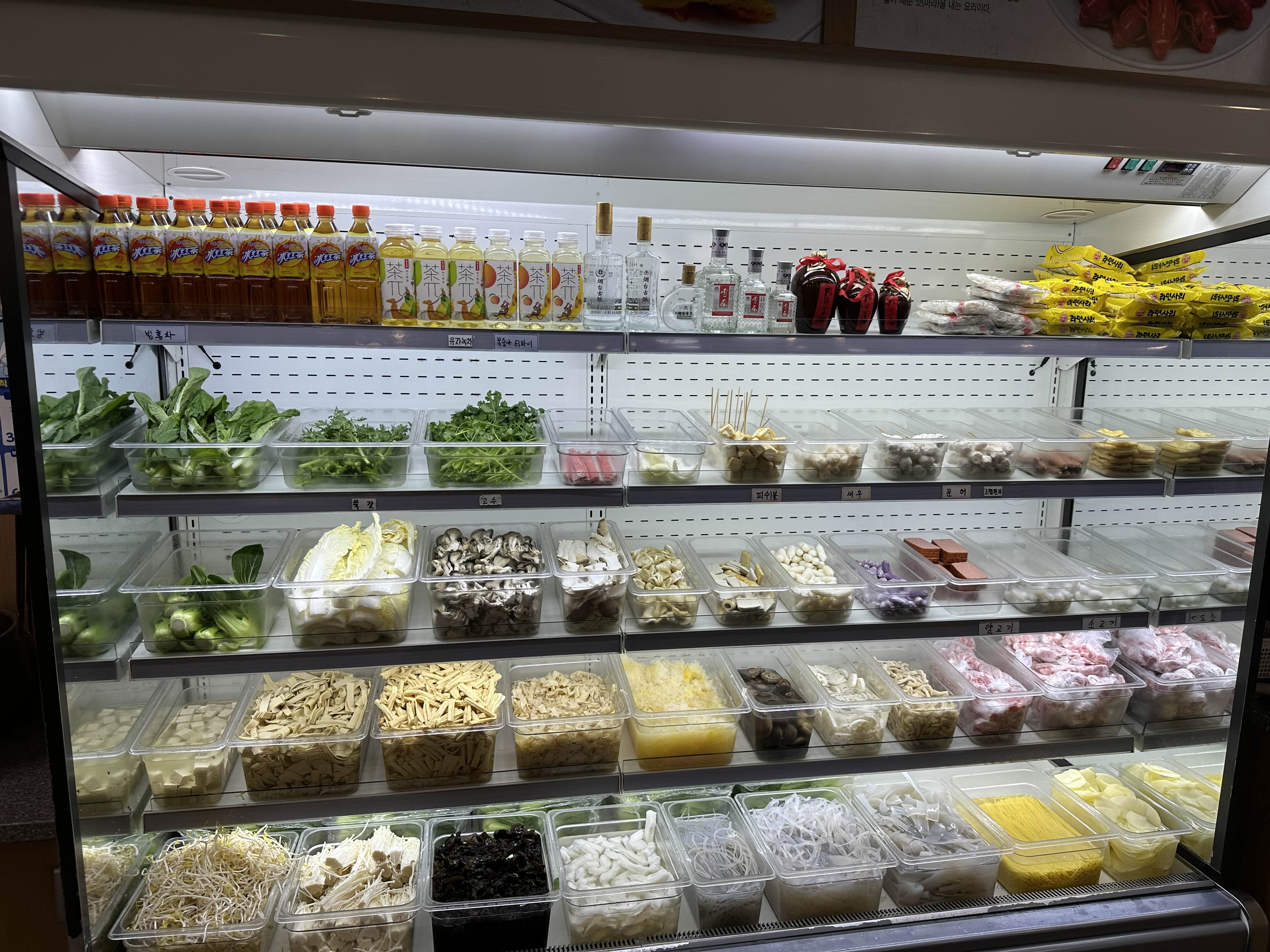 청경채, 배추, 숙주, 푸주, 중국당면과 깐양 등을 넣었습니다. 예전에는 고기류는 카운터에서 말해야했는데 봉지로 넣어서 담아갈 수 있게 바꼈네요.