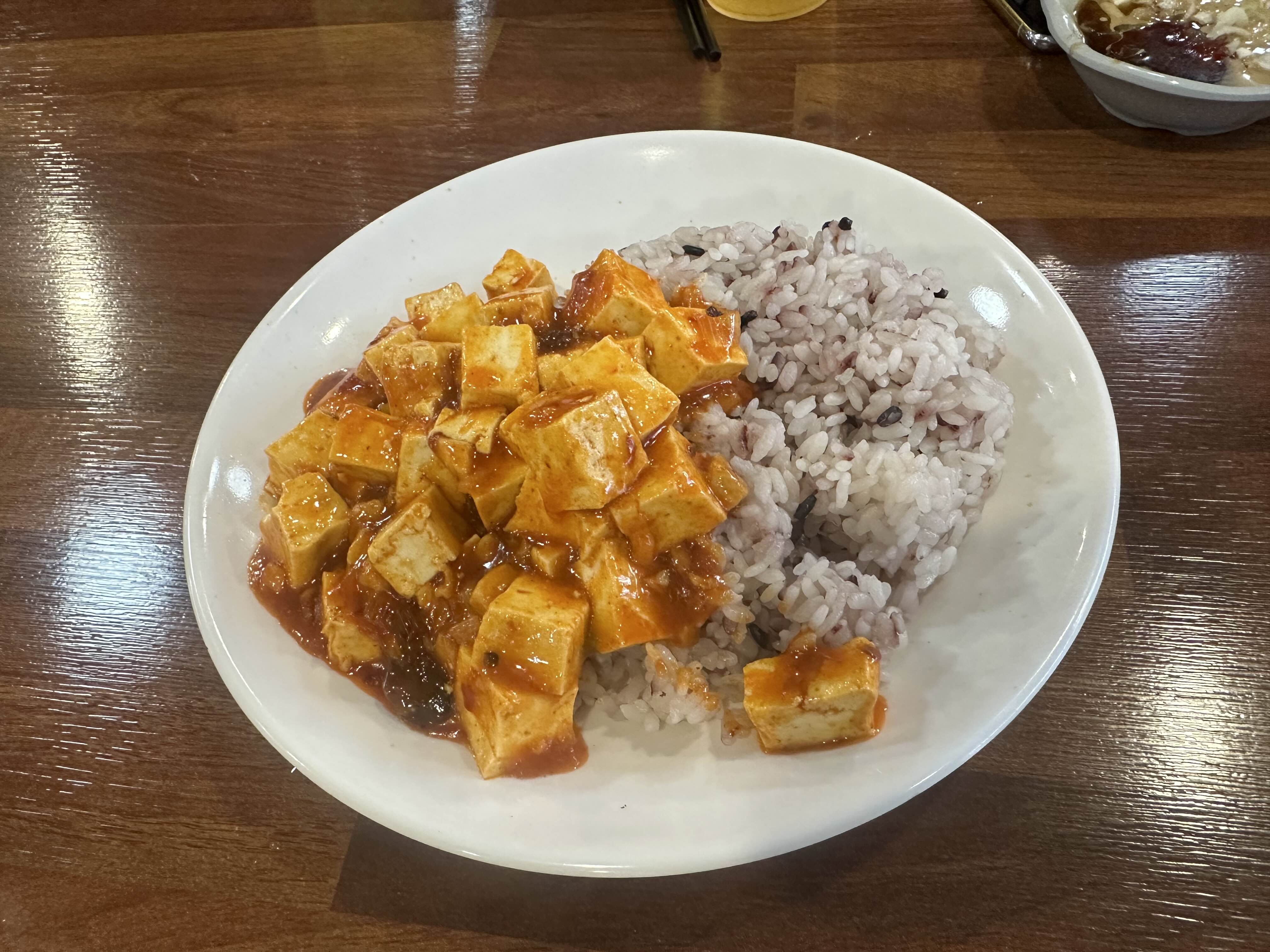 마파두부덮밥이 먼저 나왔습니다. 마파두부덮밥은 간이 세지 않고 매운편도 아니라 매운 단계의 마라탕을 좋아하시는 분들이 매울때 드시면 좋을 것 같습니다. 두부도 부드럽고 맛이 괜찮았습니다.