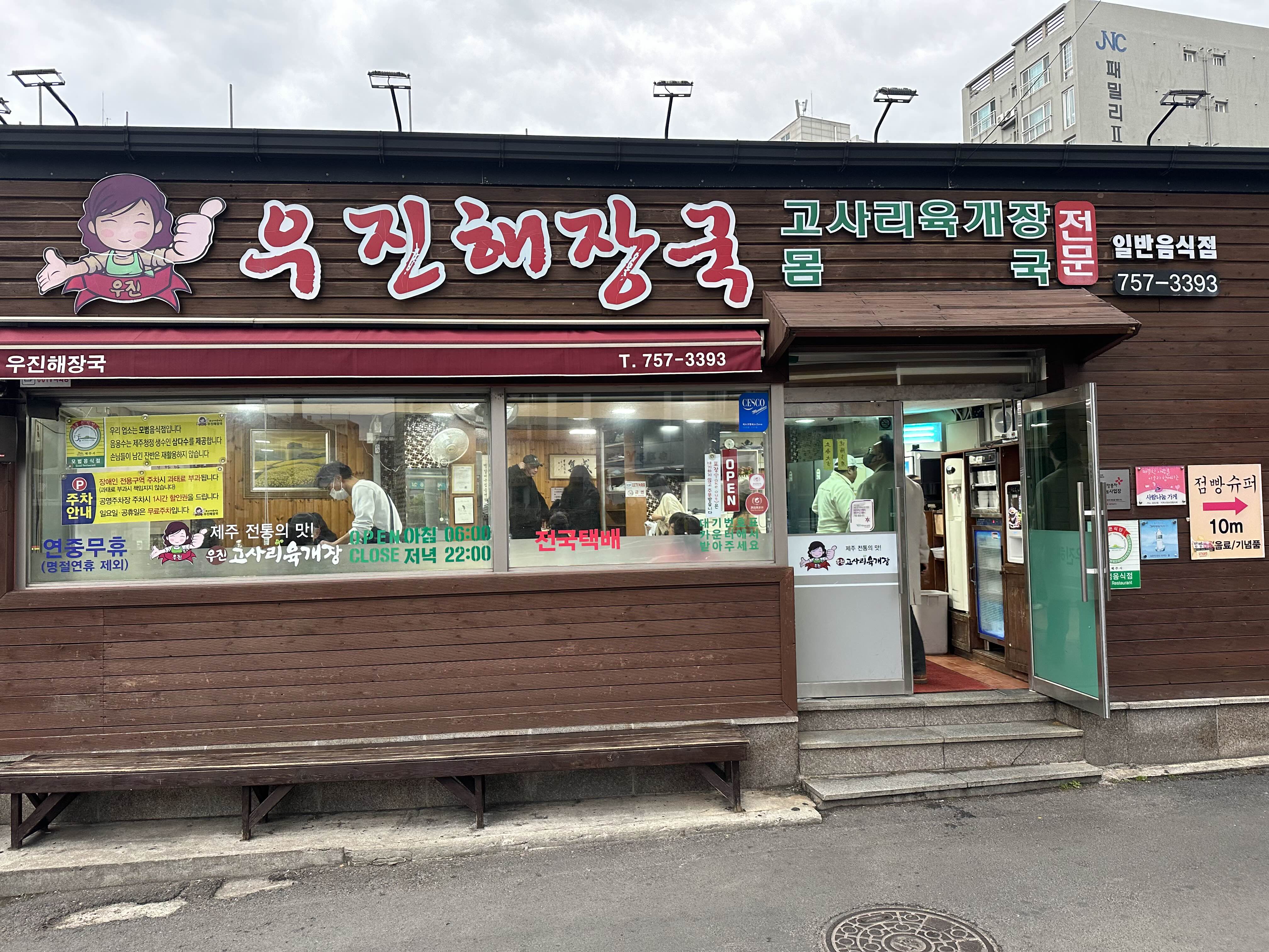 네이버 방문자 리뷰 약 15,000건, 카카오맵 방문자 리뷰 약 900건, 구글 방문자 리뷰 약 8,100건 제주 전체 식당 중 가장 유명한 맛집인 우진해장국은 제주 토속 음식인 고사리해장국, 몸국, 사골해장국, 녹두전을 판매합니다.