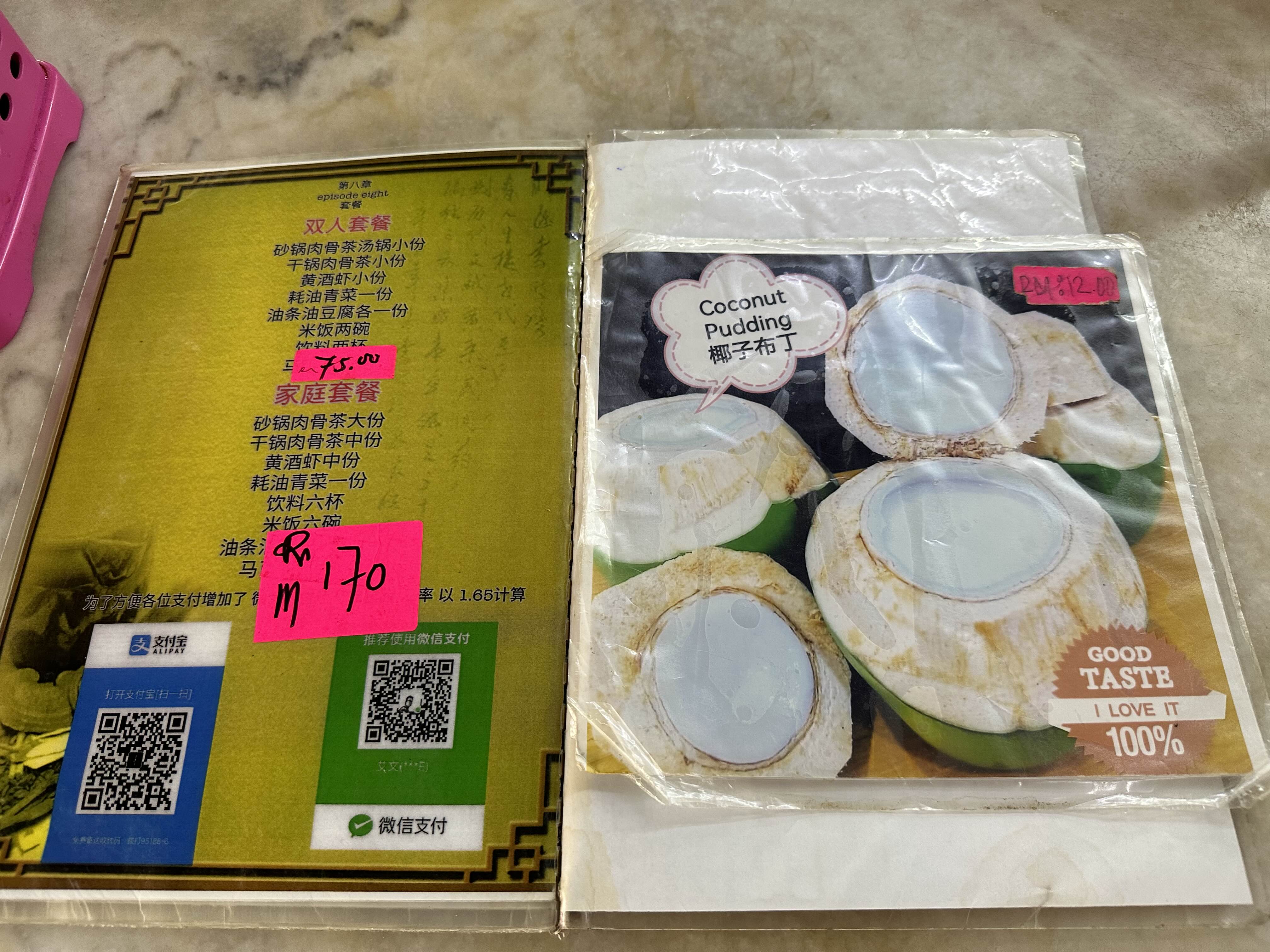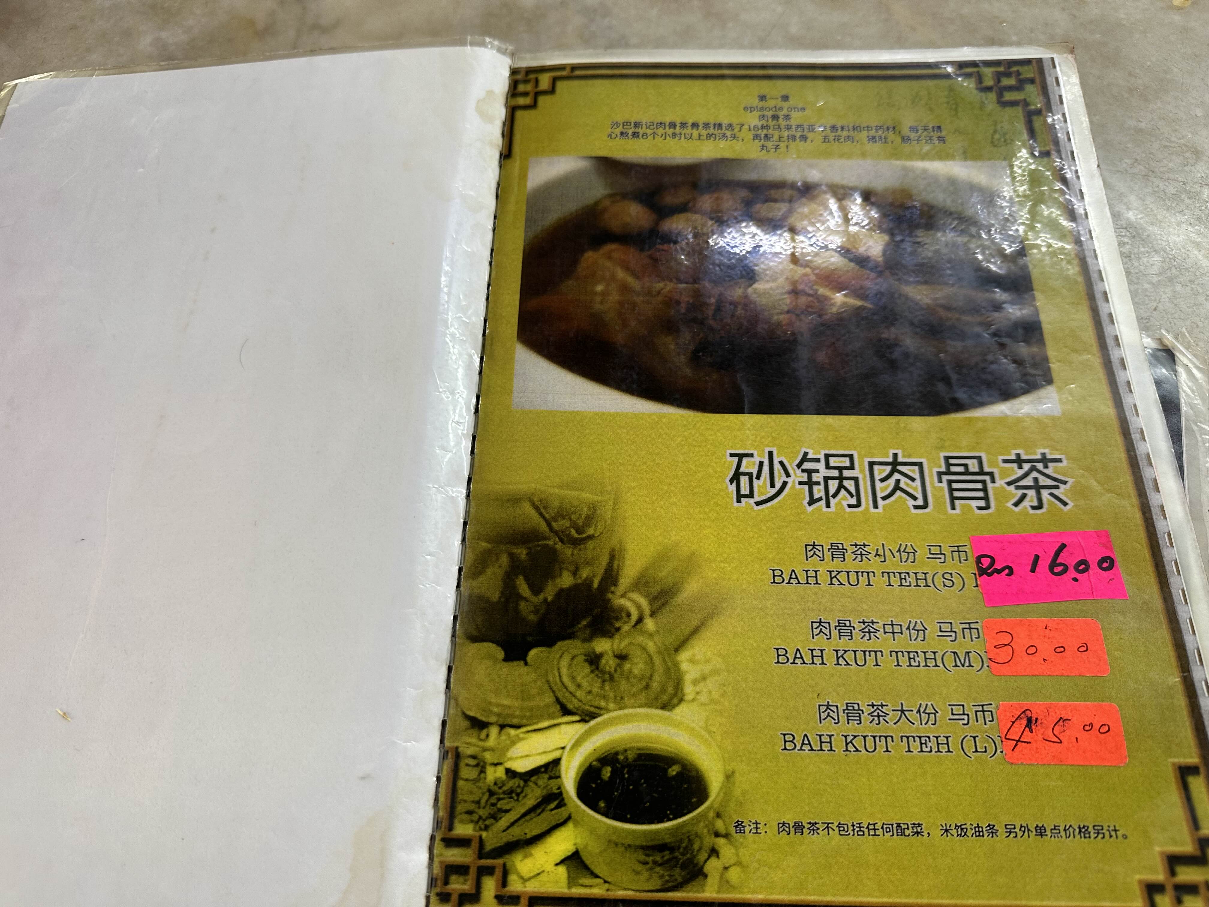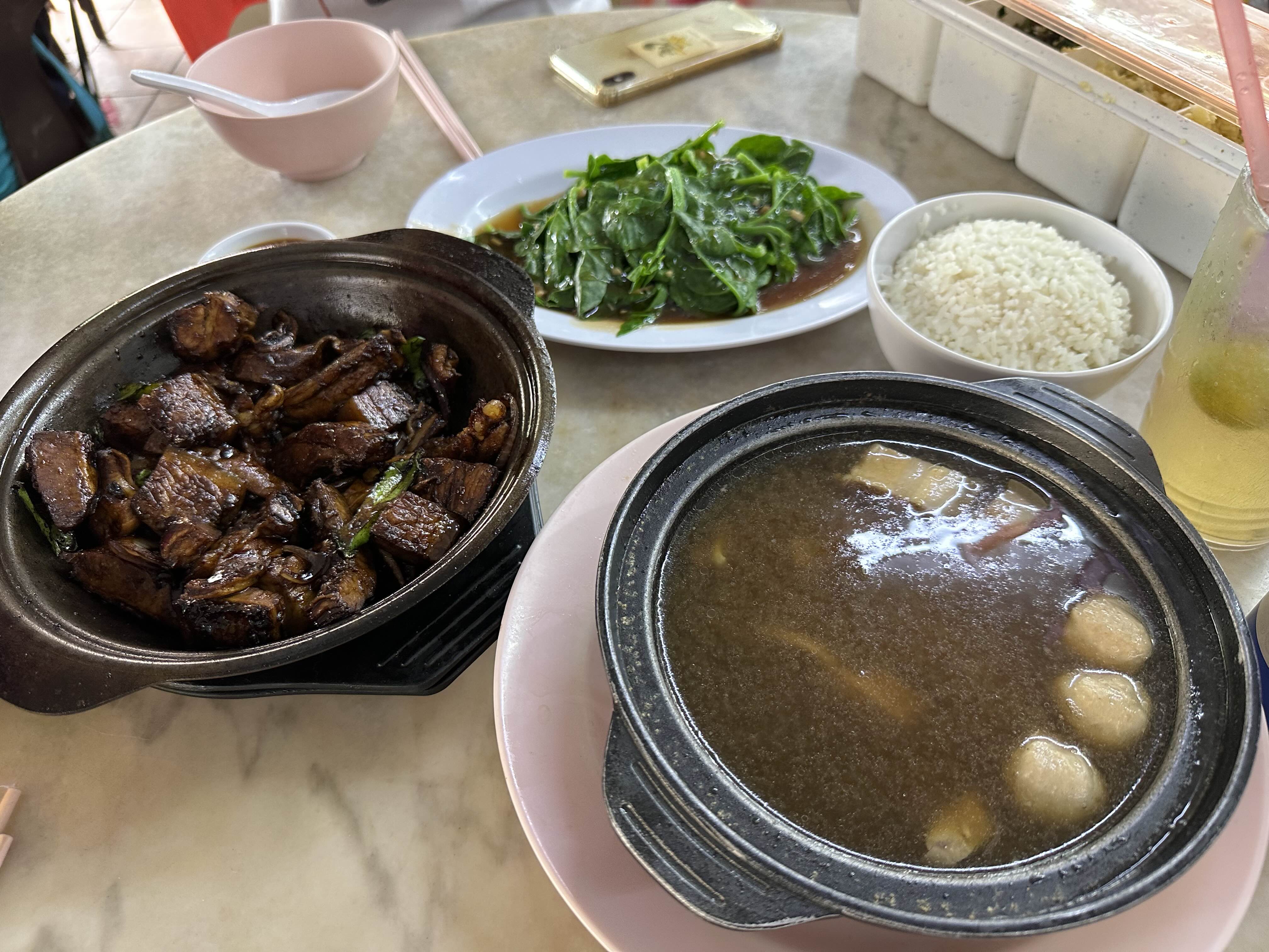 갈비탕 느낌의 바쿠테와 굴소스에 푹 졸인 드라이바쿠테가 대표 메뉴이고 그 외에도 말레이시아식 쌀국수인 락사 등 다양한 메뉴를 판매중입니다. 바쿠테와 드라이바쿠테는 스몰, 미디움, 라지 사이즈로 판매중이고 각 1, 2 ,3인분정도 되는 것 같습니다. 바쿠테 스몰사이즈와 드라이바쿠테 미디움사이즈, 모닝글로리 볶음과 밥 한공기를 주문했습니다.