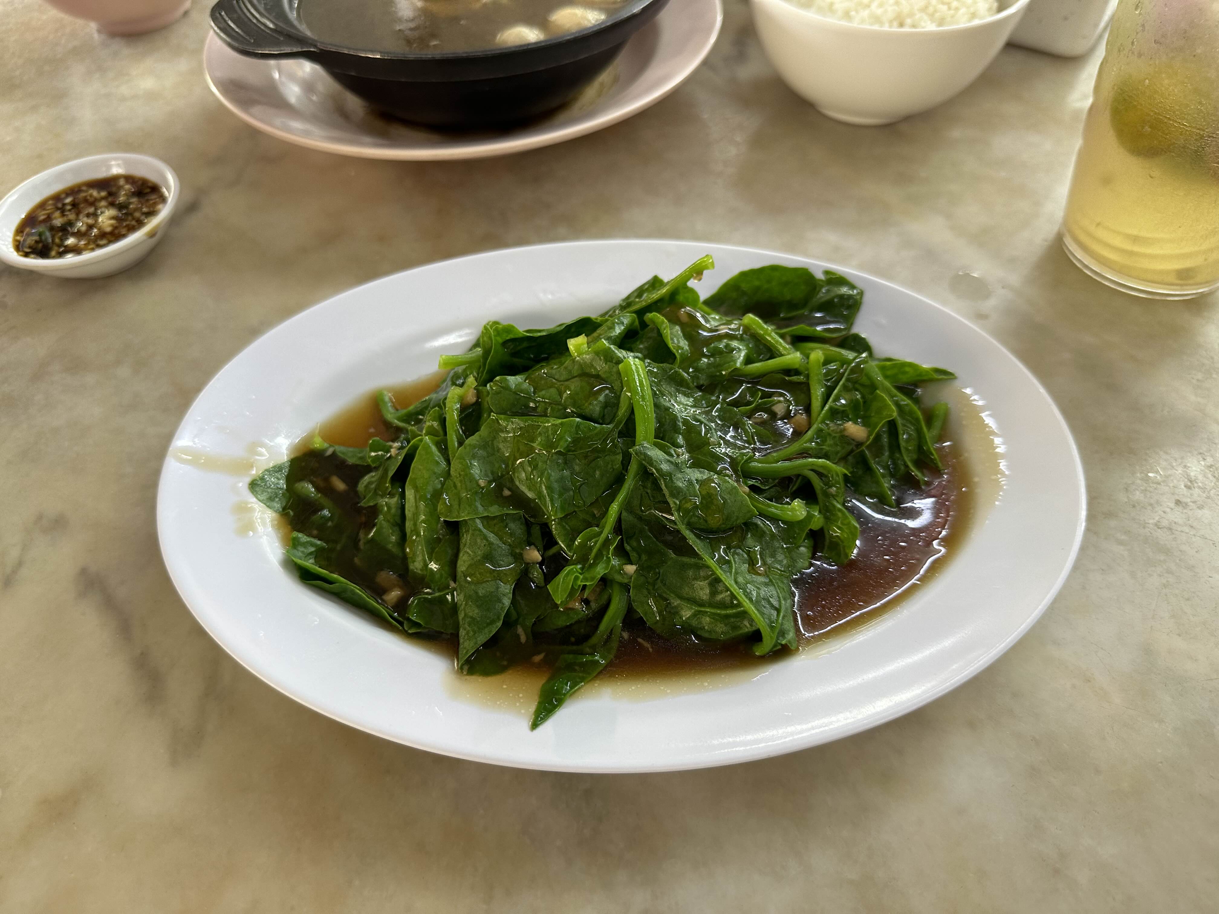 바쿠테와 드라이바쿠테, 모닝글로리 볶음, 공기밥이 다 나왔습니다.