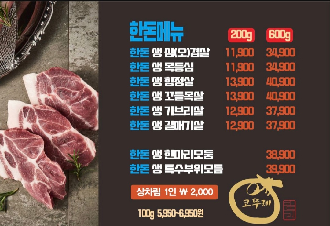 1인당 ₩2,000입니다. 고기 가격이 저렴해
