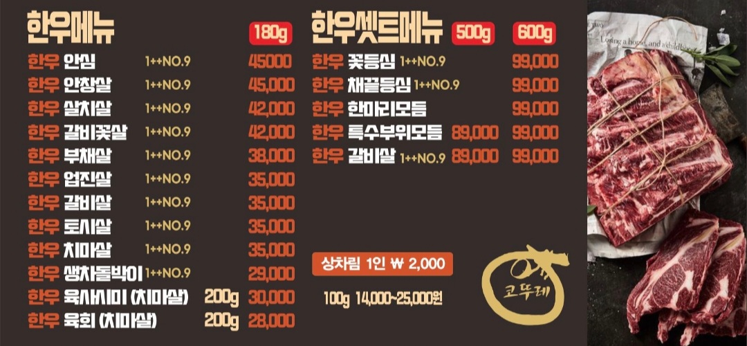 코뚜레는 정육식당 느낌의 식당이라 상차림비가
