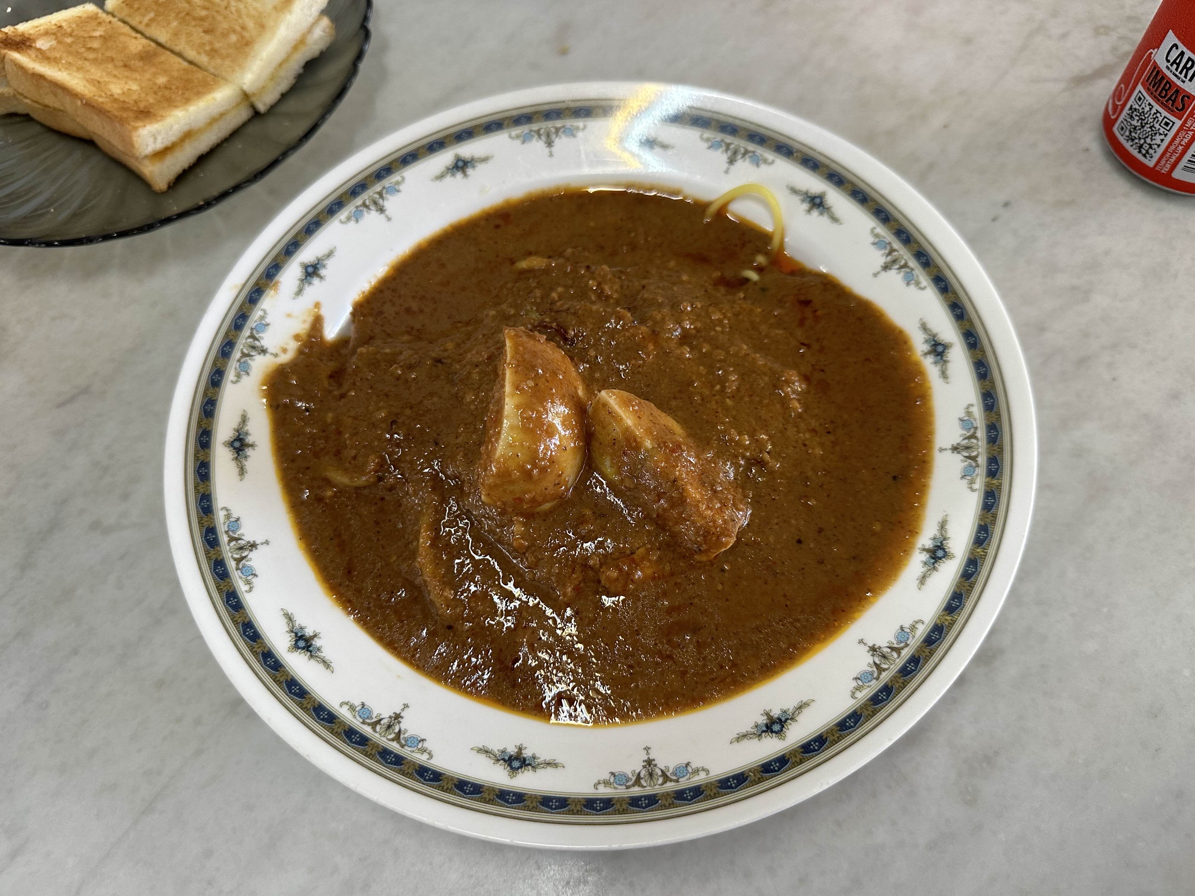 결제는 음식이 나올 때마다 하는데 음료와 카야토스트가 나올 때 사장님에게 한번, 사테가 나올 때 사테를 굽고 계시던 분에게 한번, 국수와 로작이 나올 때 국수를 삶던 분에게 한번 이렇게 세 번에 걸쳐서 했습니다. 신기한 시스템입니다.