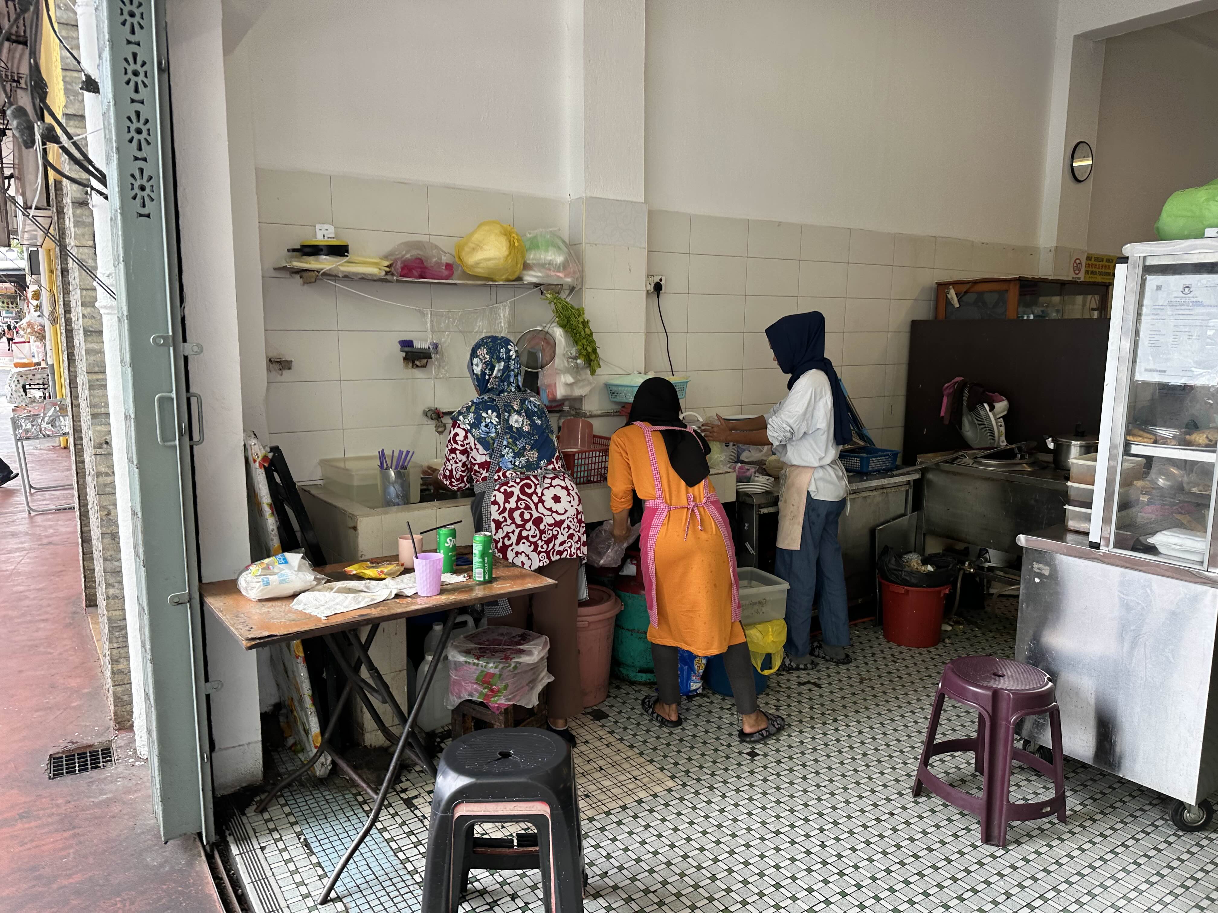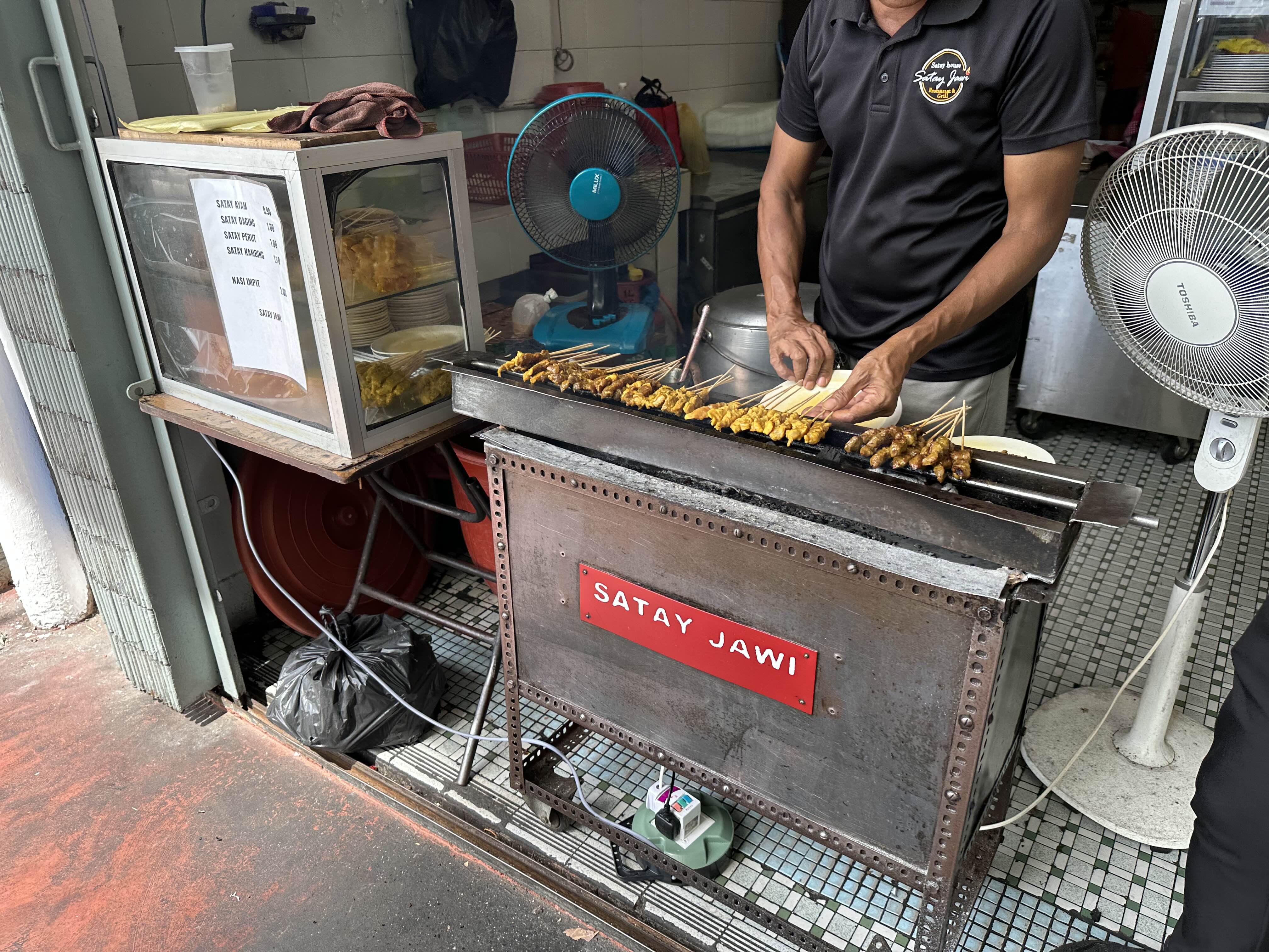 가게 입구에서 말레이시아 꼬치인 사테를 열심히 굽고 안쪽에서는 땅콩 소스 국수인 로작과, 쌀국수 등을 조리합니다.