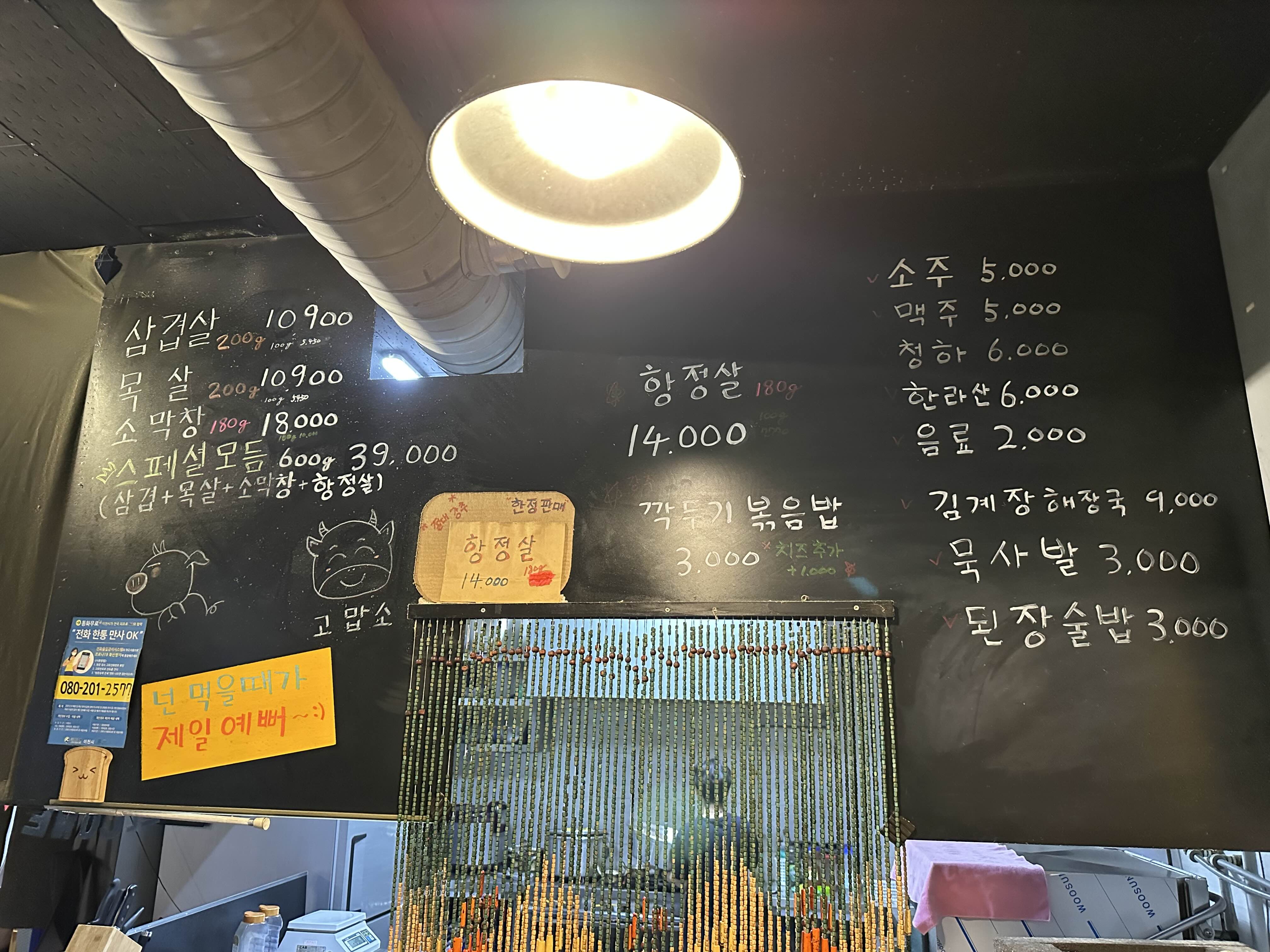 삼겹살과 목살의 경우 다른 집들에 비해 특출난 느낌을 받지는 못했지만 무난히 맛있는 고기였습니다. 반면 항정살은 정말 특출난 맛과 식감이어서 다음에 방문하면 항정살을 주로 시킬 것 같습니다.