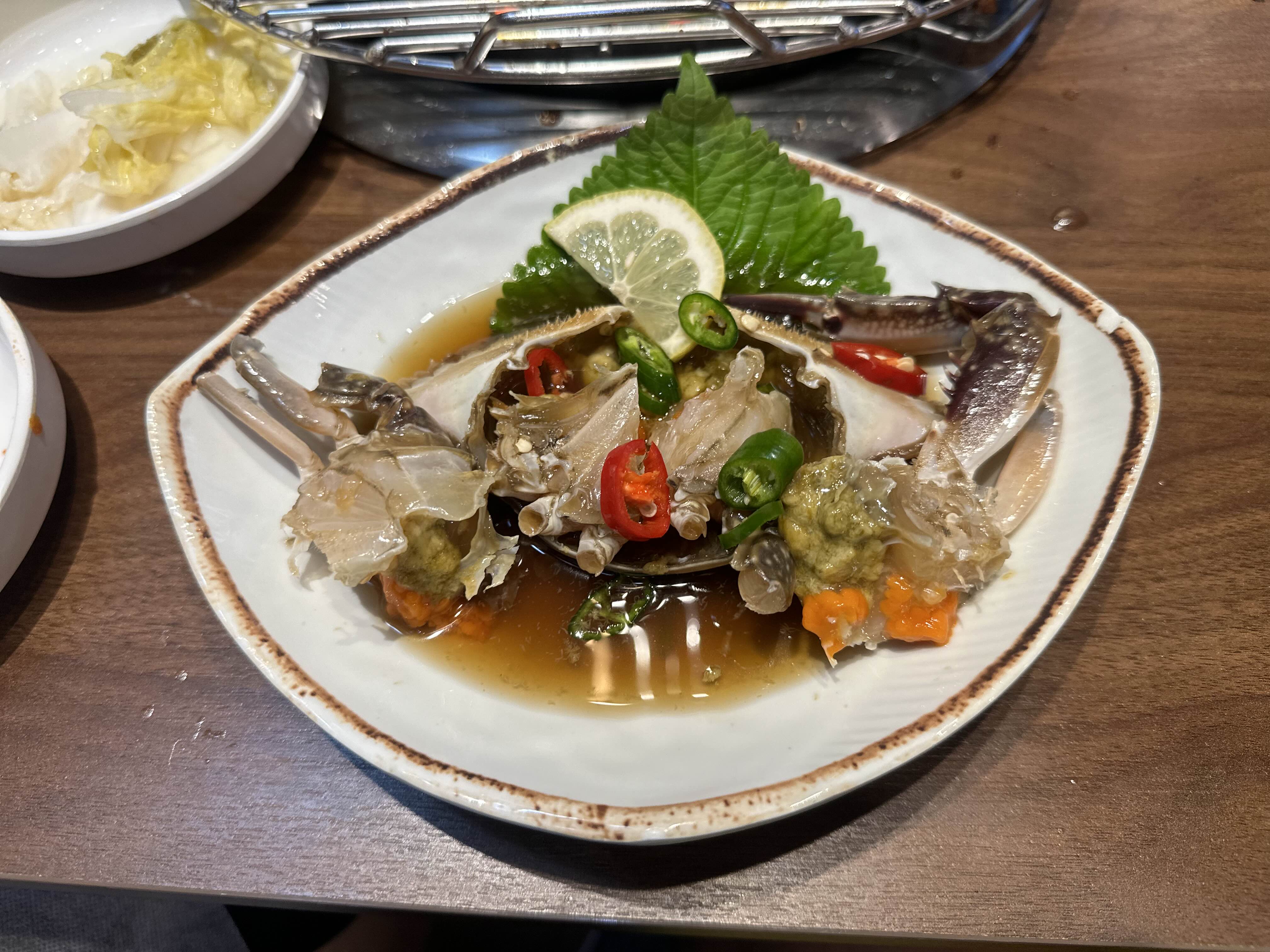 알이 밴 암 꽃게 간장게장은 신선한듯 장도 아주 맛이 좋습니다. 살도 부드럽고 달달한 맛이 좋습니다. 간장도 맛이 세지 않고 게장과 맛이 잘 어울립니다. 게 살을 살짝 발라 밥을 양념과 비벼먹으면 맛이 좋습니다.