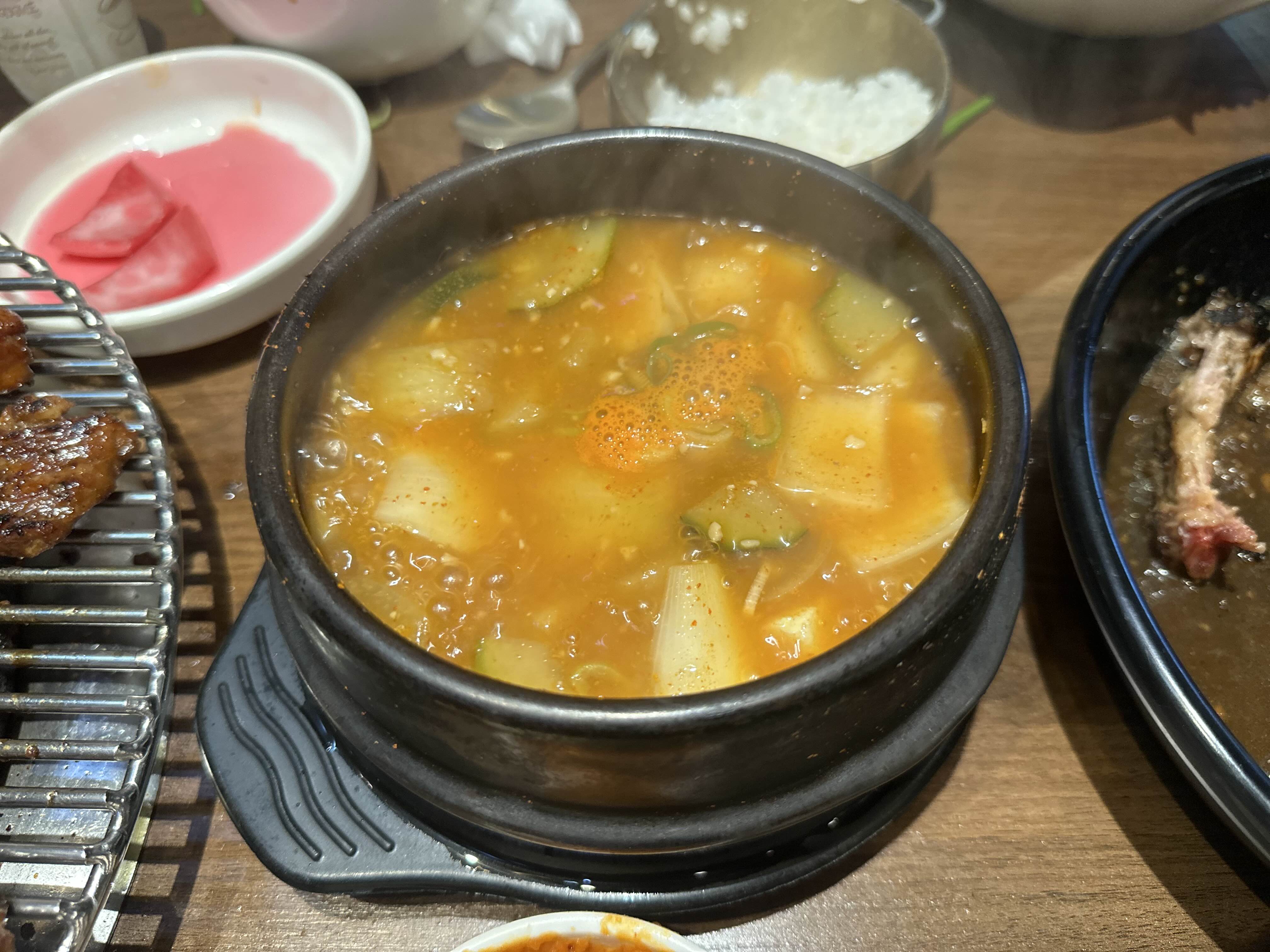 소고기 된장찌개에는 소고기는 별로 들어있지 않아 7,000원은 가격이 좀 높다고 생각듭니다. 된장찌개 자체는 일반 고깃집 된장찌개 맛처럼 나쁘지 않았습니다.