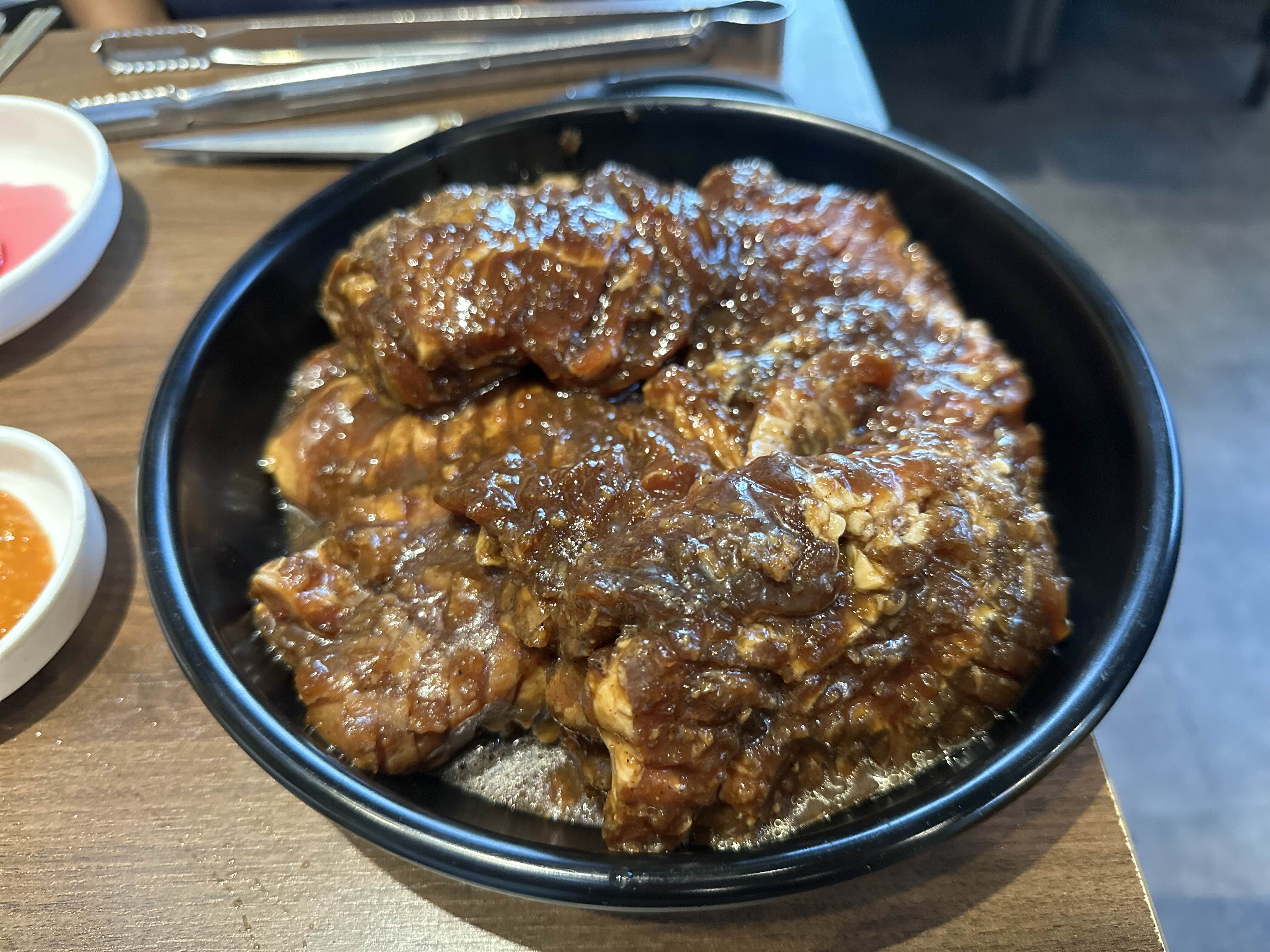 부드러운 갈비부위와 목전지 부위가 같이 있고 양념은 약하지 않고 달달한 편입니다. 아이들이 좋아할 맛입니다.