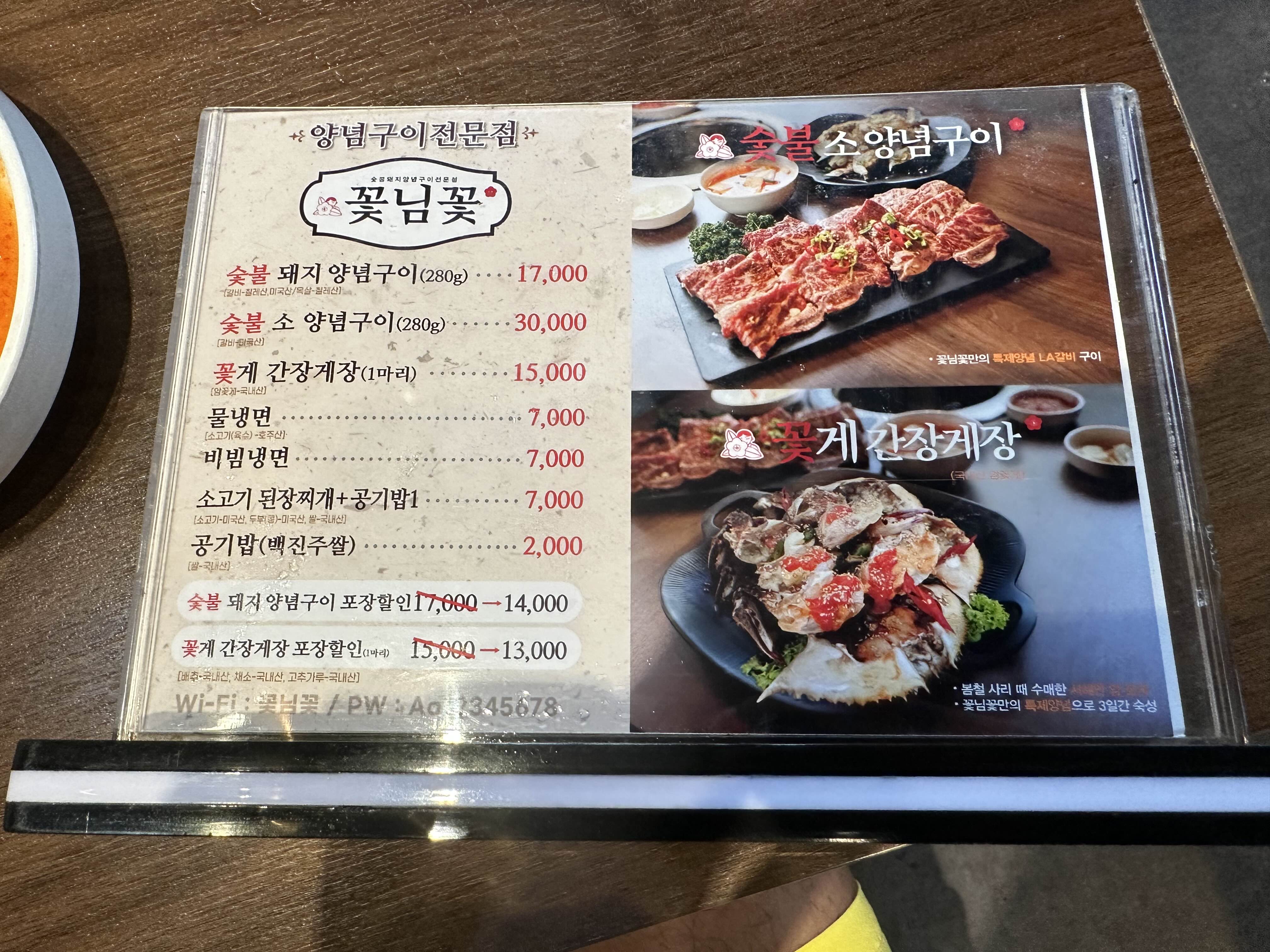 돼지양념구이와 간장게장은 할인된 가격으로 포장도 가능합니다.