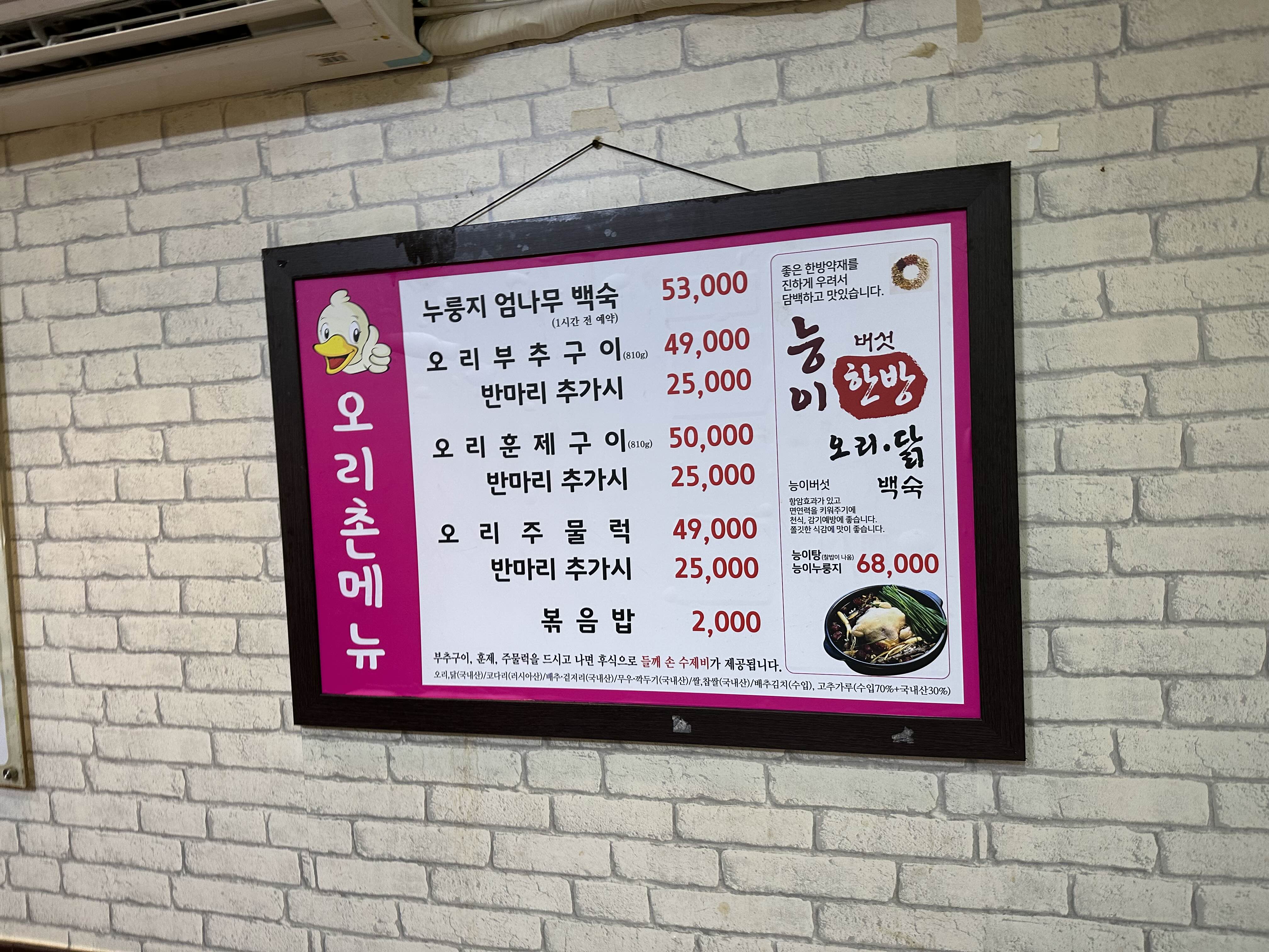 백숙은 한시간 전 미리 예약을 해야합니다. 오리부추구이로 주문했습니다.