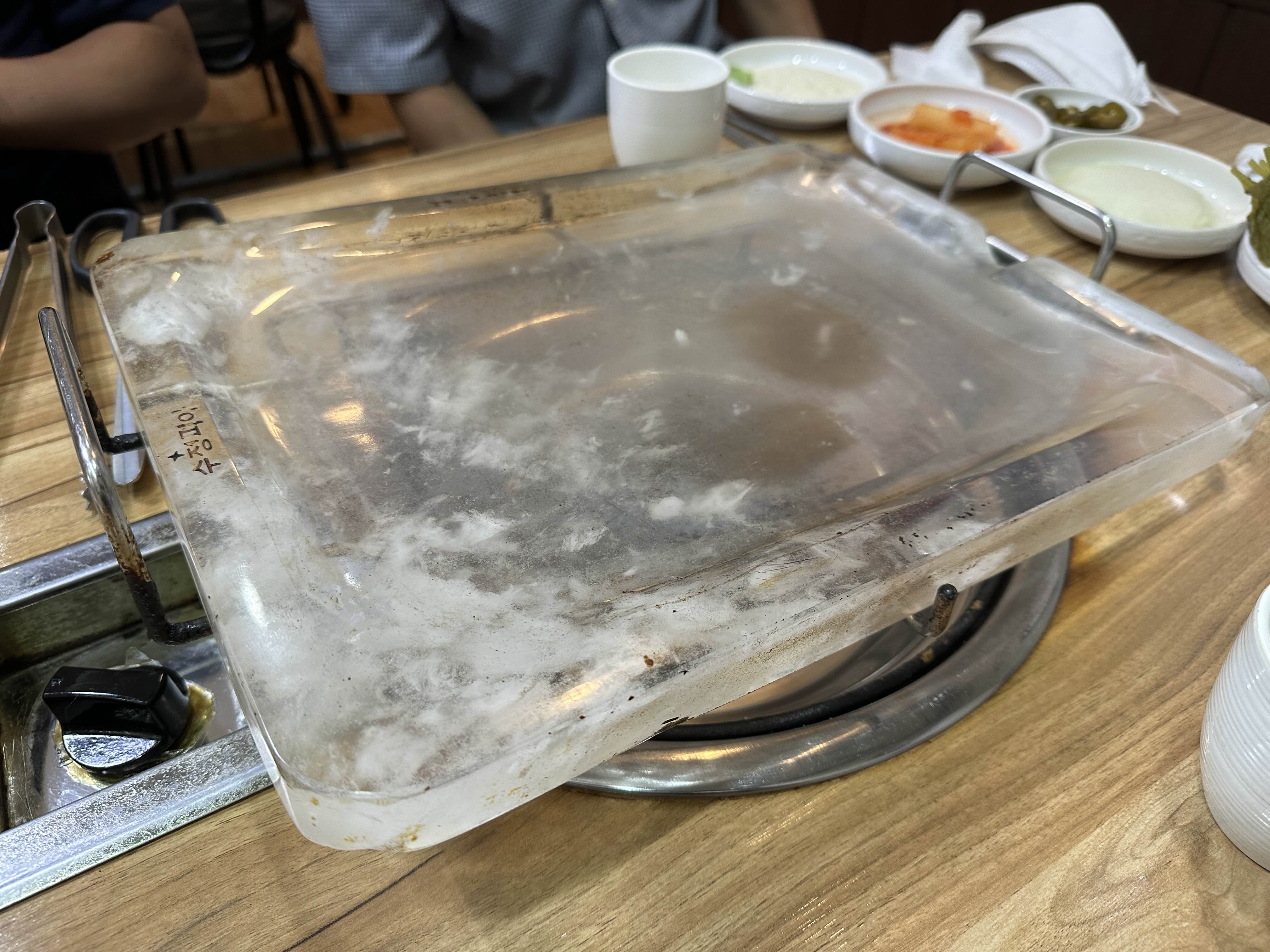 수정으로 만든 특별한 불판을 사용하는 용인 기흥구청 맛집 오리촌입니다. 일반 불판보다 열 전도가 더 빠르다고 합니다.