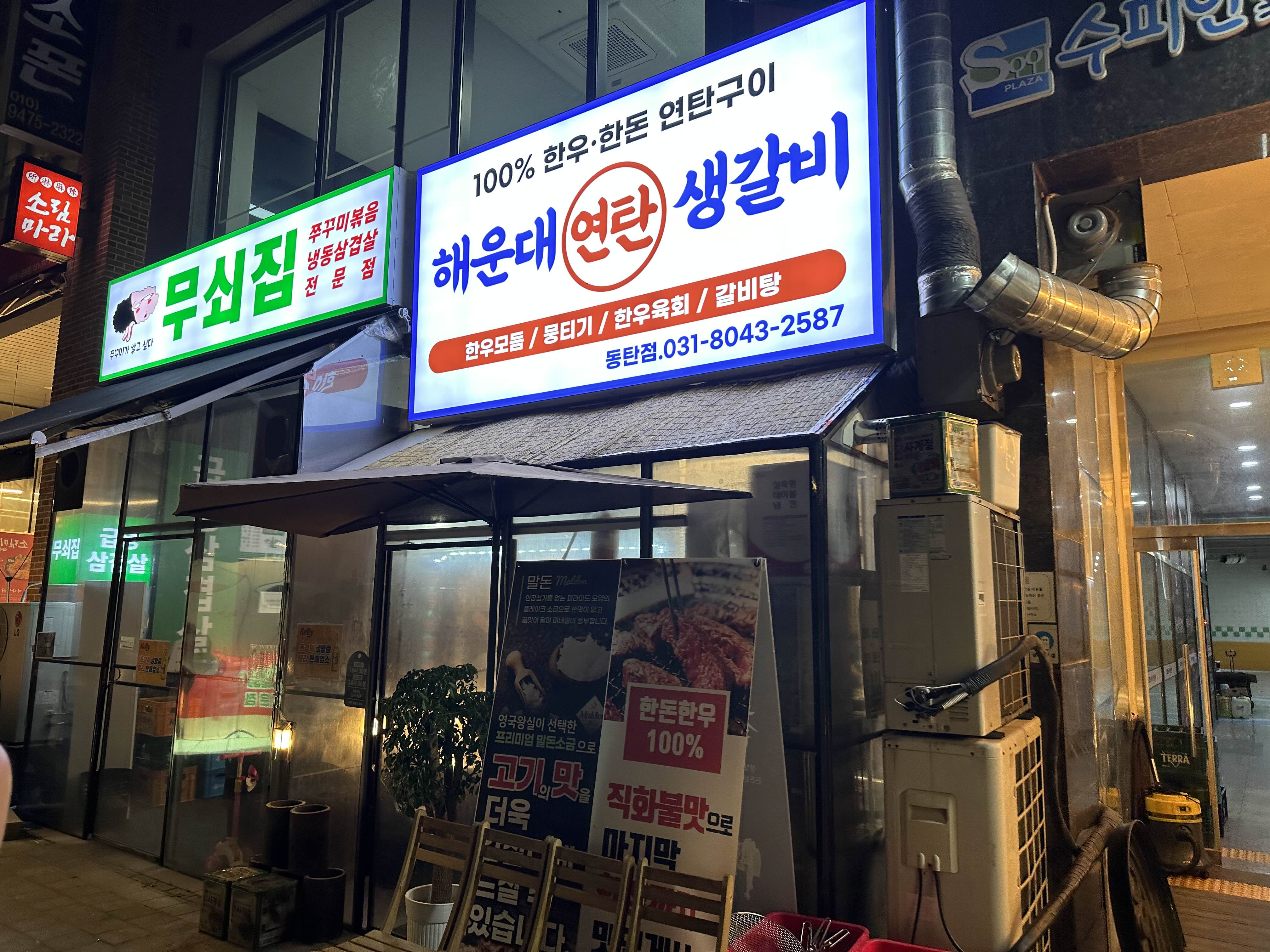 동탄 호수공원 한우 육회 한우 물회 맛집 한우 해운대연탄생갈비는 부영 4단지 맞은편 지하 수변상가에 위치했습니다. 한우 생갈비와 한우 모듬구이가 유명한 곳이지만 가벼운 안주를 즐기러 방문했습니다.