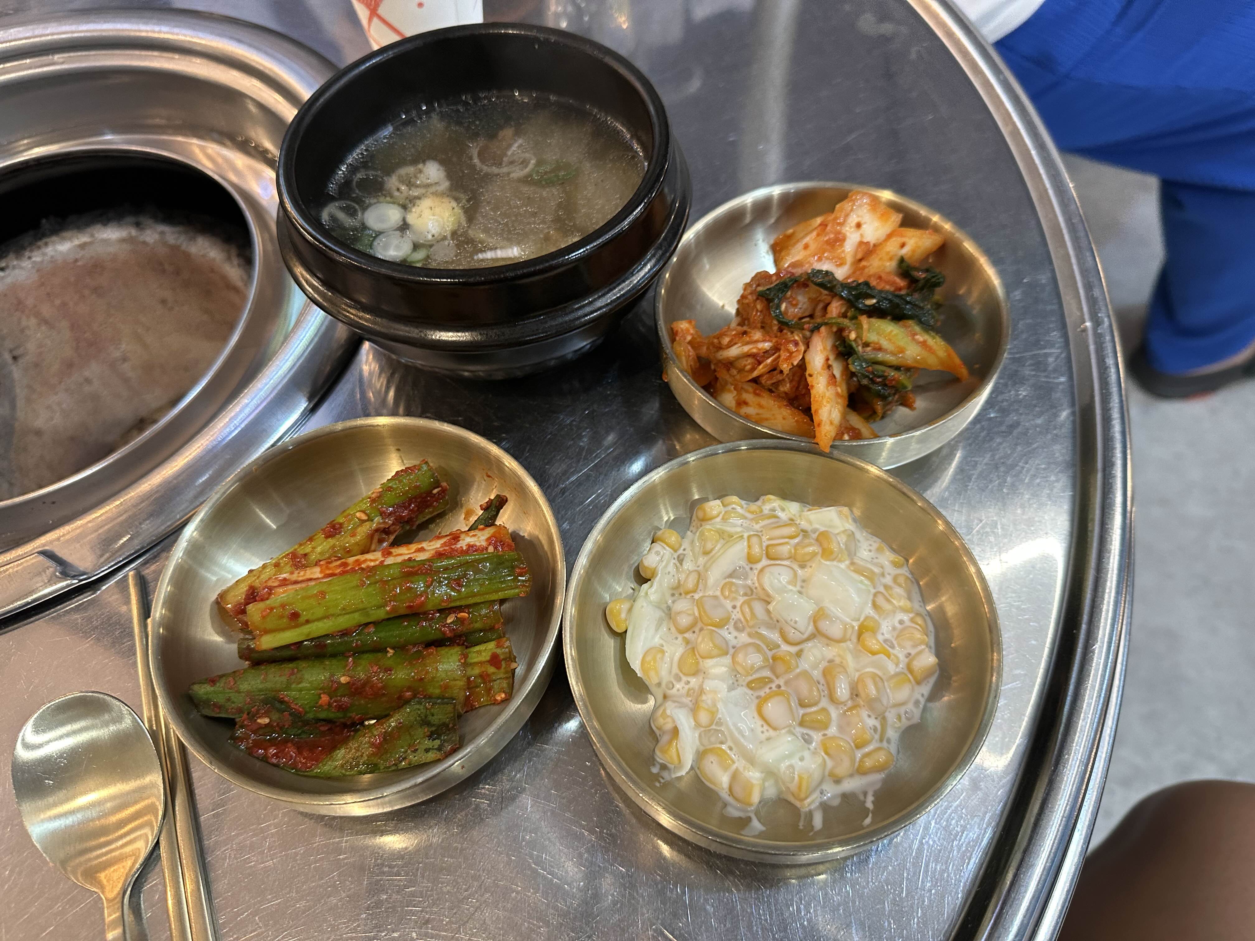 배추김치가 매콤하니 맛이 좋았고 콘샐러드도 맛있고 대파김치는 슴슴한 맛이었습니다.