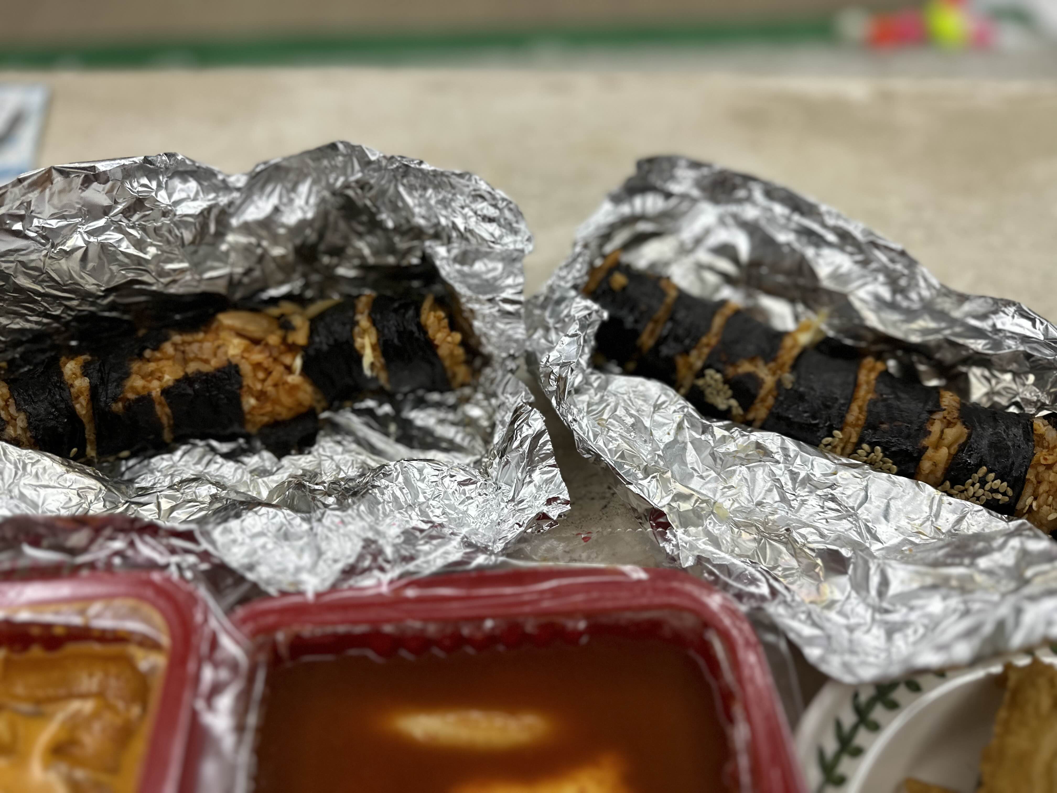 매콤치즈김밥도 예전에 그 감동은 아니지만 없으면 허전한 매콤치즈신전김밥입니다. 매콤한 빨간 양념에 가운데에 치즈가 들어있어 매운맛이 중화됩니다. 떡볶이와 같이 먹기 좋습니다.
