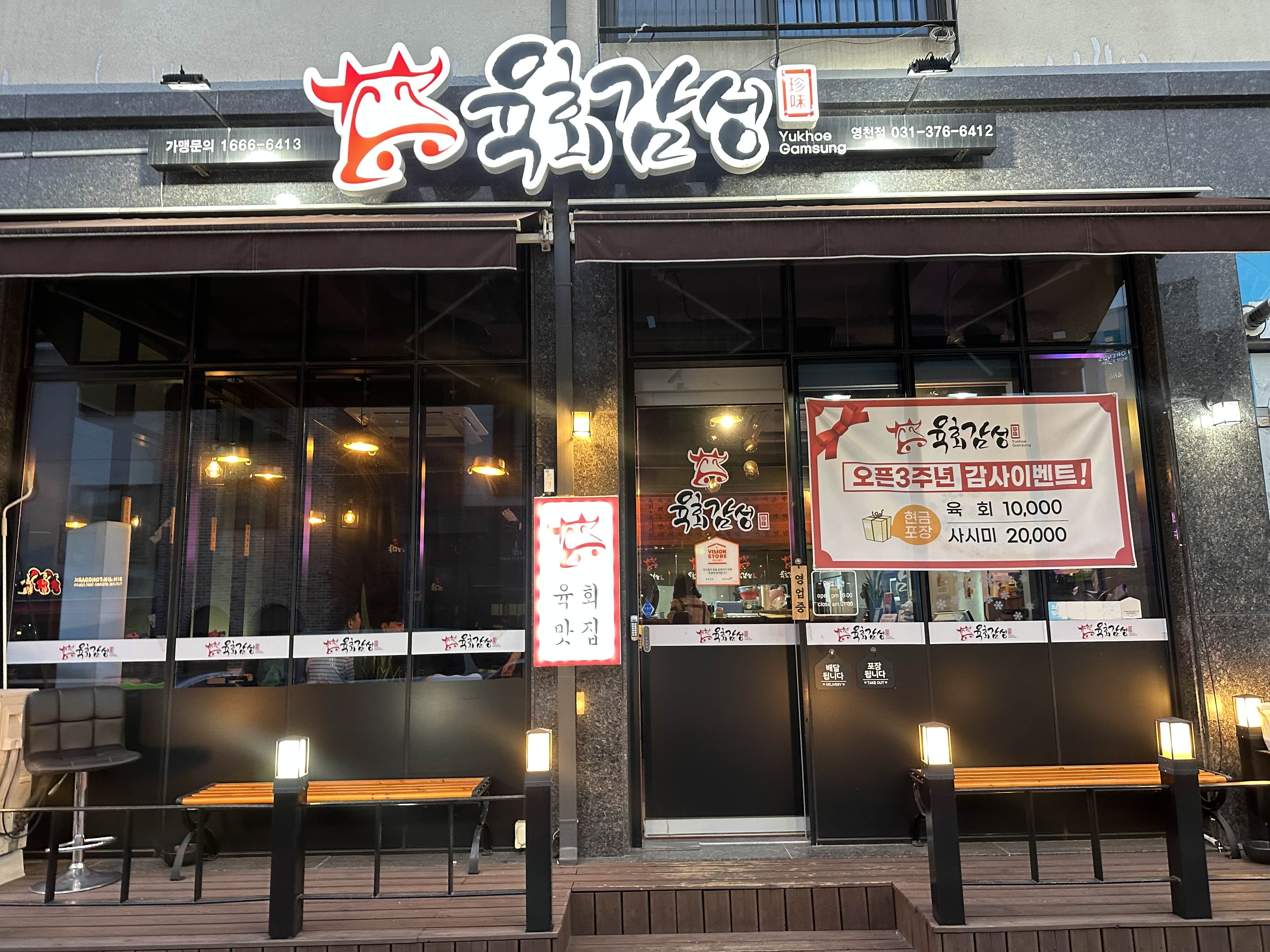 영천동 11자 상가에 가성비 육회집이 있어 종종 방문하는 육회감성에 오랜만에 방문했습니다. 오픈 3주년 감사이벤트로 육회 10,000원, 육사시미 20,000원 포장 할인중입니다.