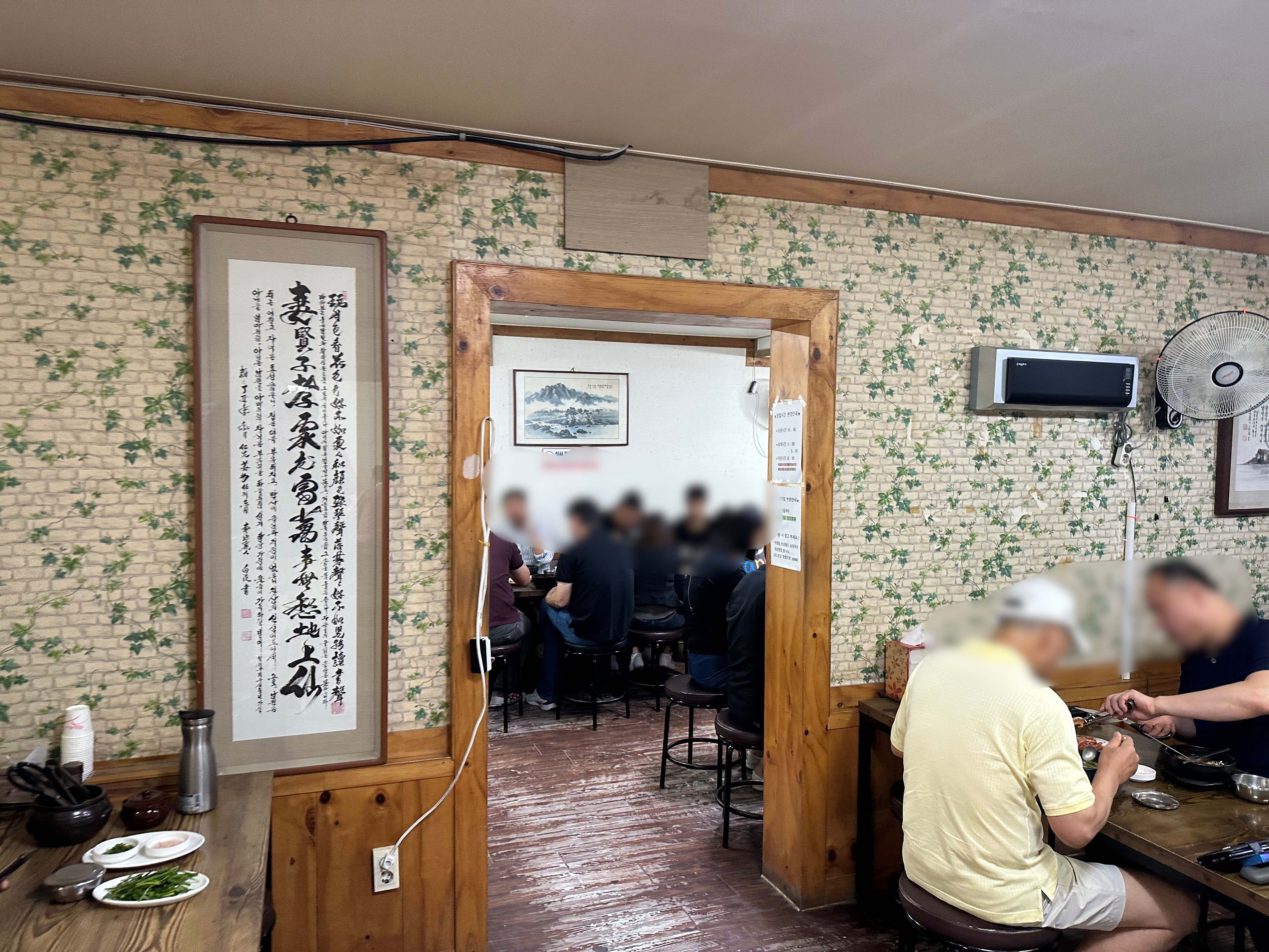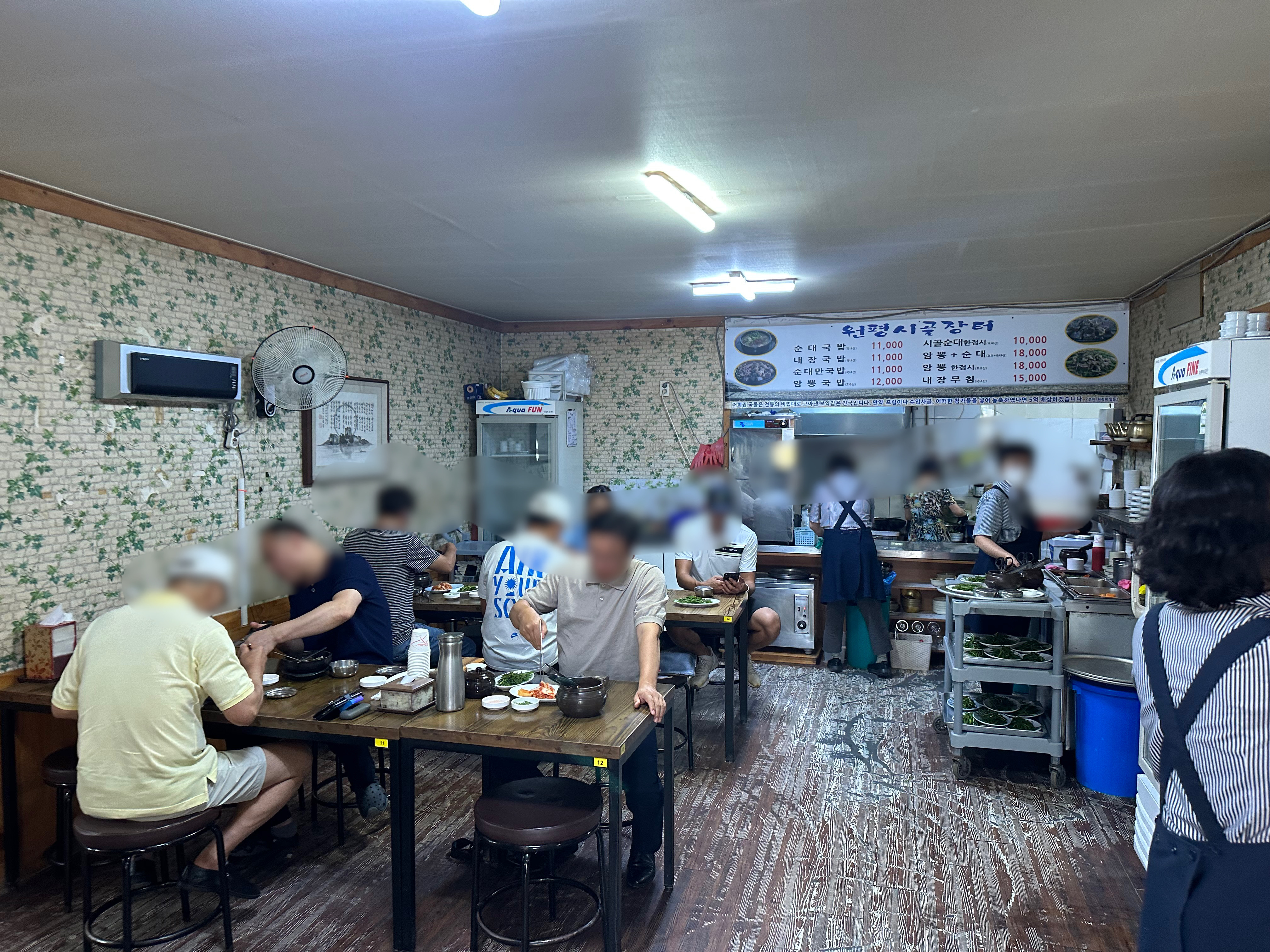 원평시골장터는 메인 홀에 약 4개의 4인 테이블과 좌 우로 넓은 룸이 있습니다. 손님이 만석에 웨이팅도 있기도 하지만 가게가 넓고 회전율이 빨라 긴 웨이팅을 하진 않을 것 같습니다.