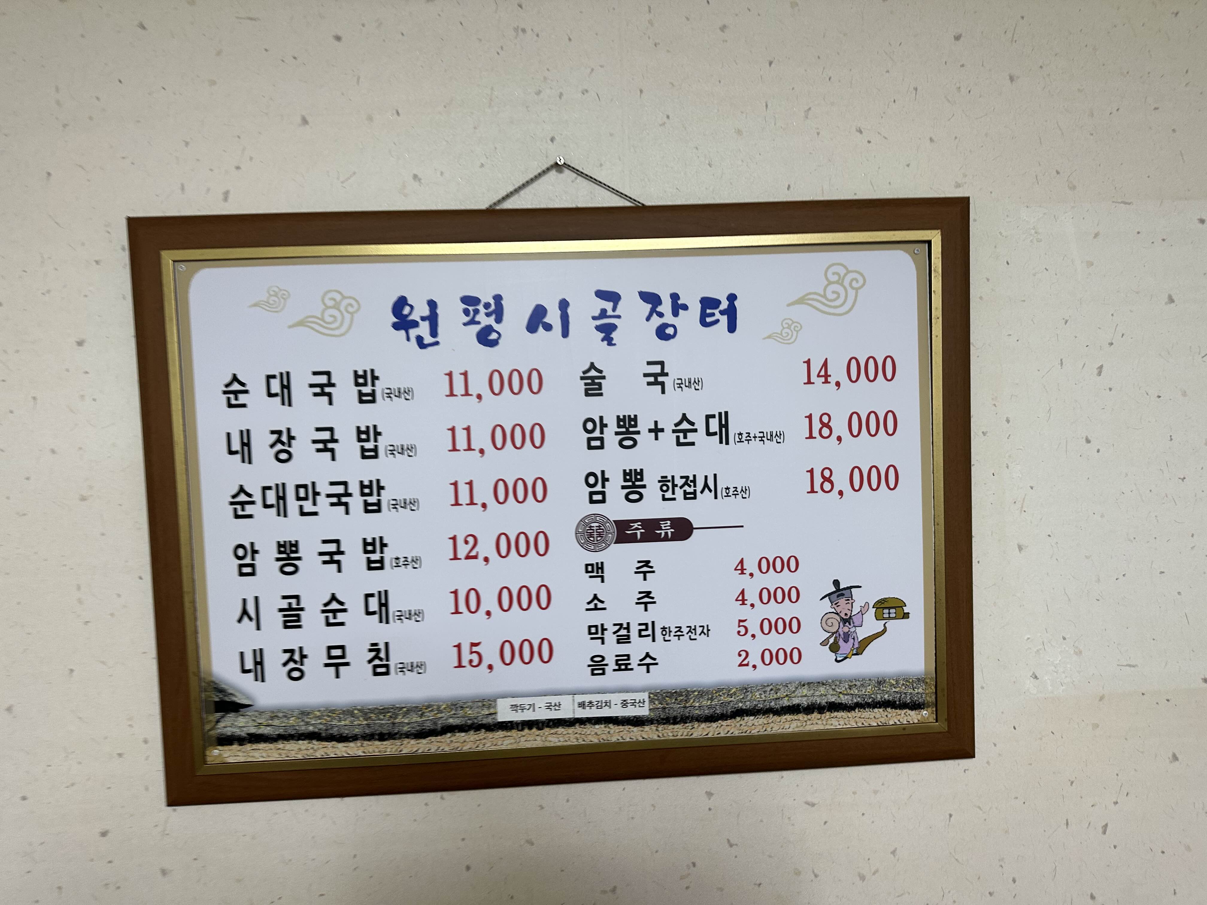용인에서 순대국밥 맛집으로 소문난 용인 기흥구 순대국밥 맛집 원평시골장터에 방문했습니다. 꽤나 외진곳에 위치해있지만 점심시간이면 매장이 꽉 차는 유명 맛집입니다. 가게 입구에 약 7대 가량 주차할 수 있지만 부족하여 길가에도 차량이 참 많습니다.