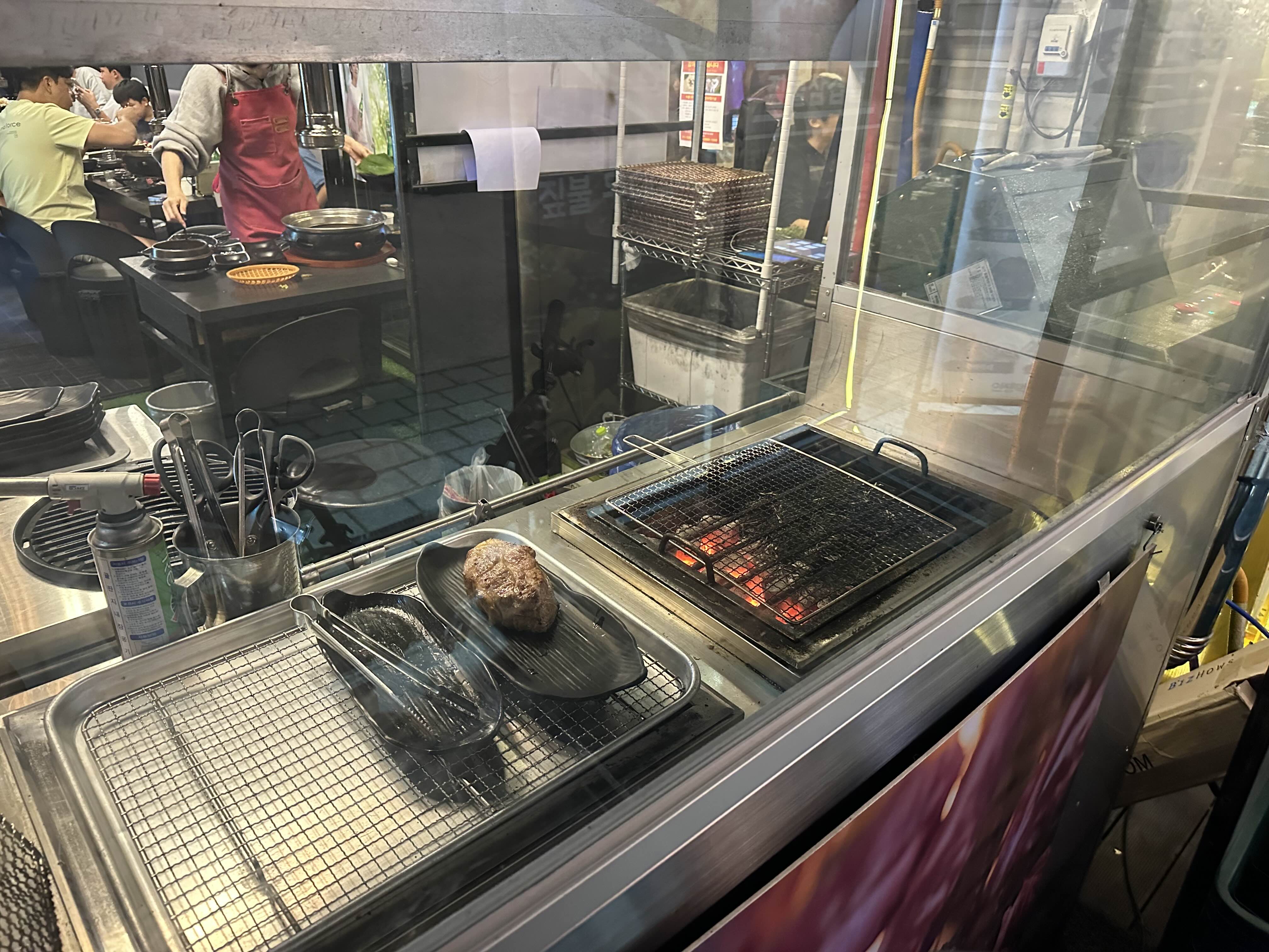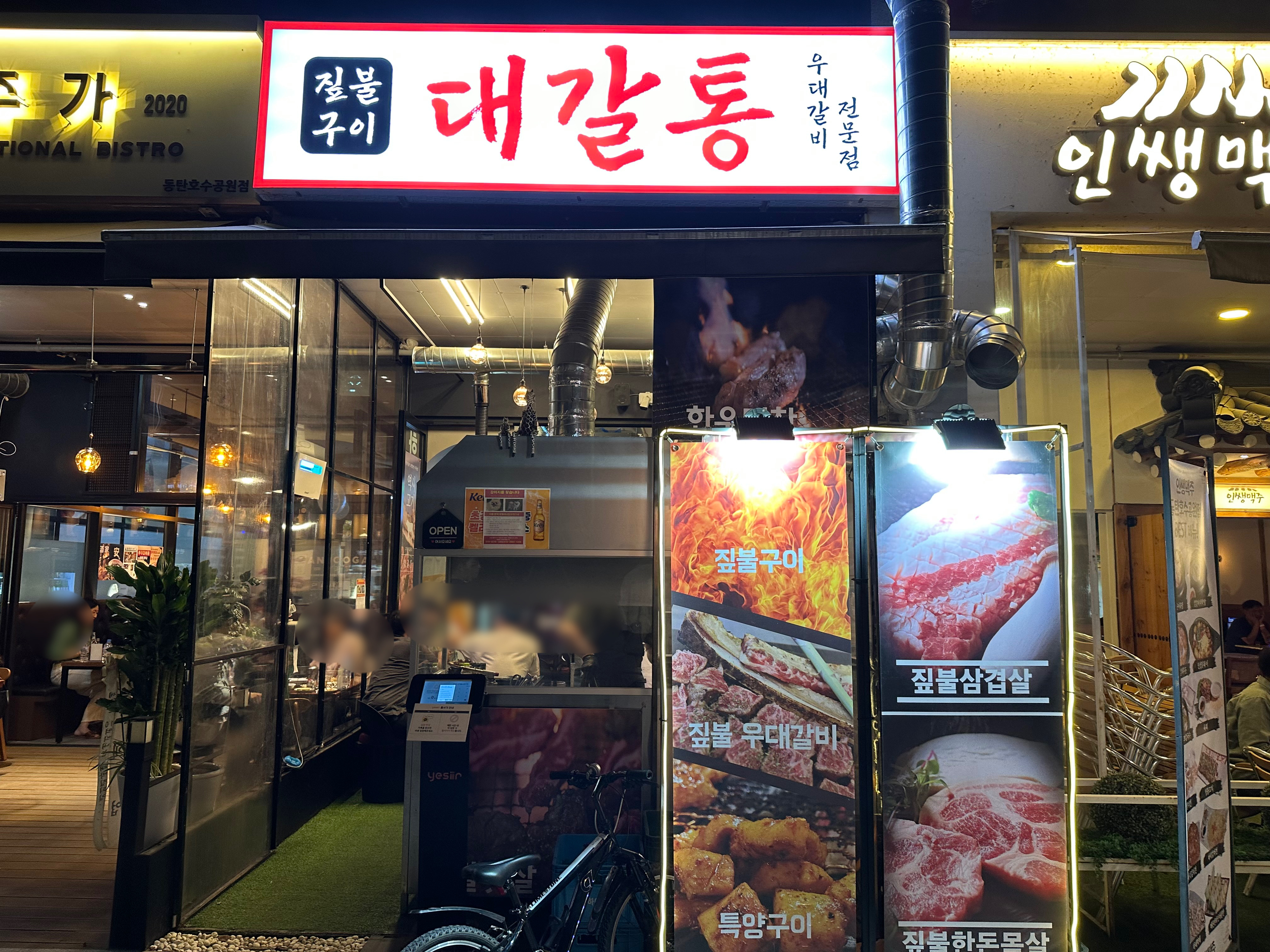 동탄 호수공원 수변공원 상가에는 고깃집이 많이 있는데 짚불구이 우대갈비집은 대갈통만 있는 것 같아 우대갈비가 먹고 싶어서 방문했습니다. 한 호실만 사용해 매장은 좁은 편입니다.
