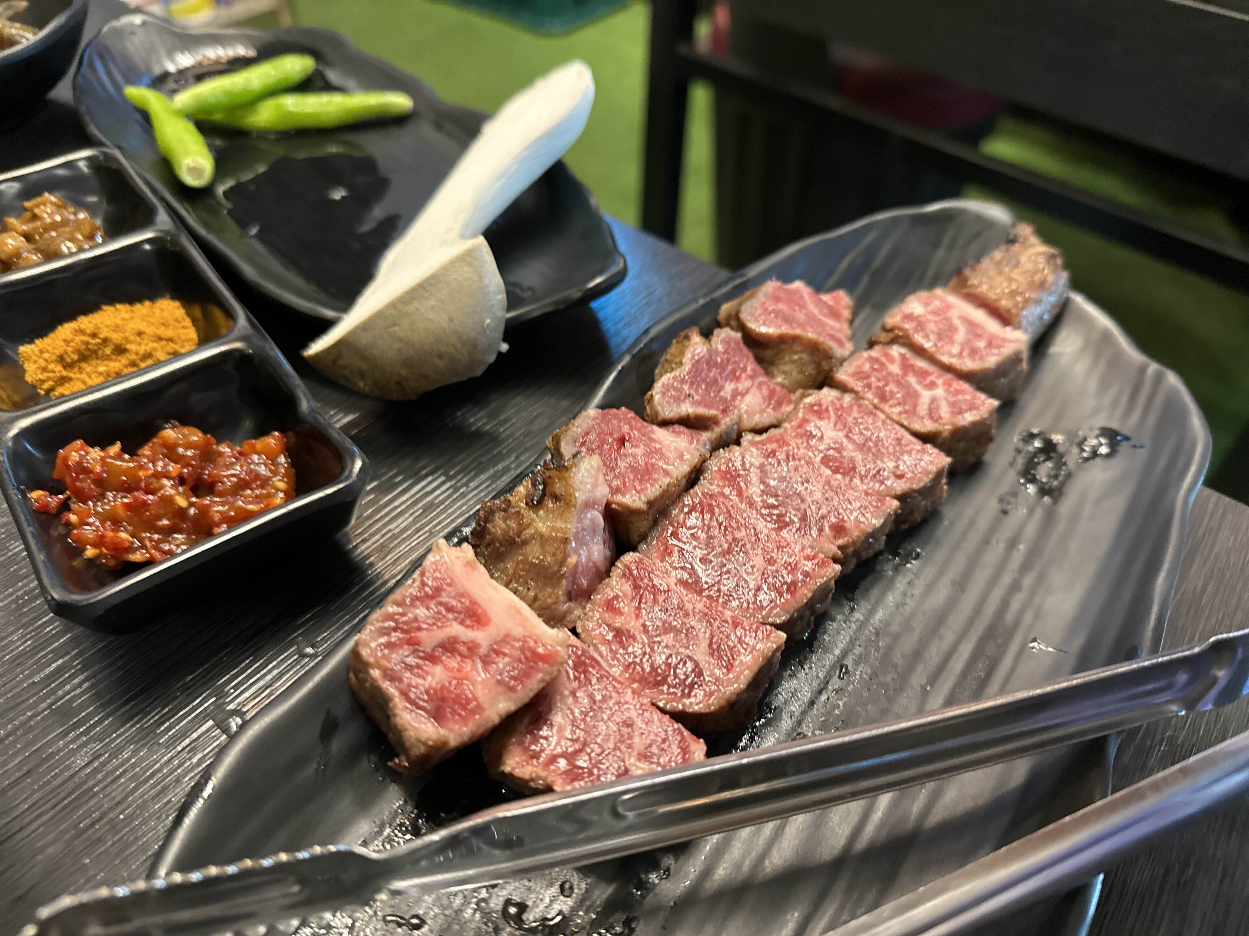 짚불로 초벌구이를 해 온 상태여서 짚불향이 은은하게 났습니다. 미디움 레어부터 미디움정도까지 익혀서 먹었습니다. 상당히 부드럽고 고소한 육향이 아주 좋습니다. 숯에 직화로 구워 더 맛이 좋은 듯 합니다. 우대갈비로 유명한 삼각지 몽탄 부럽지 않은 훌륭한 우대갈비였습니다.