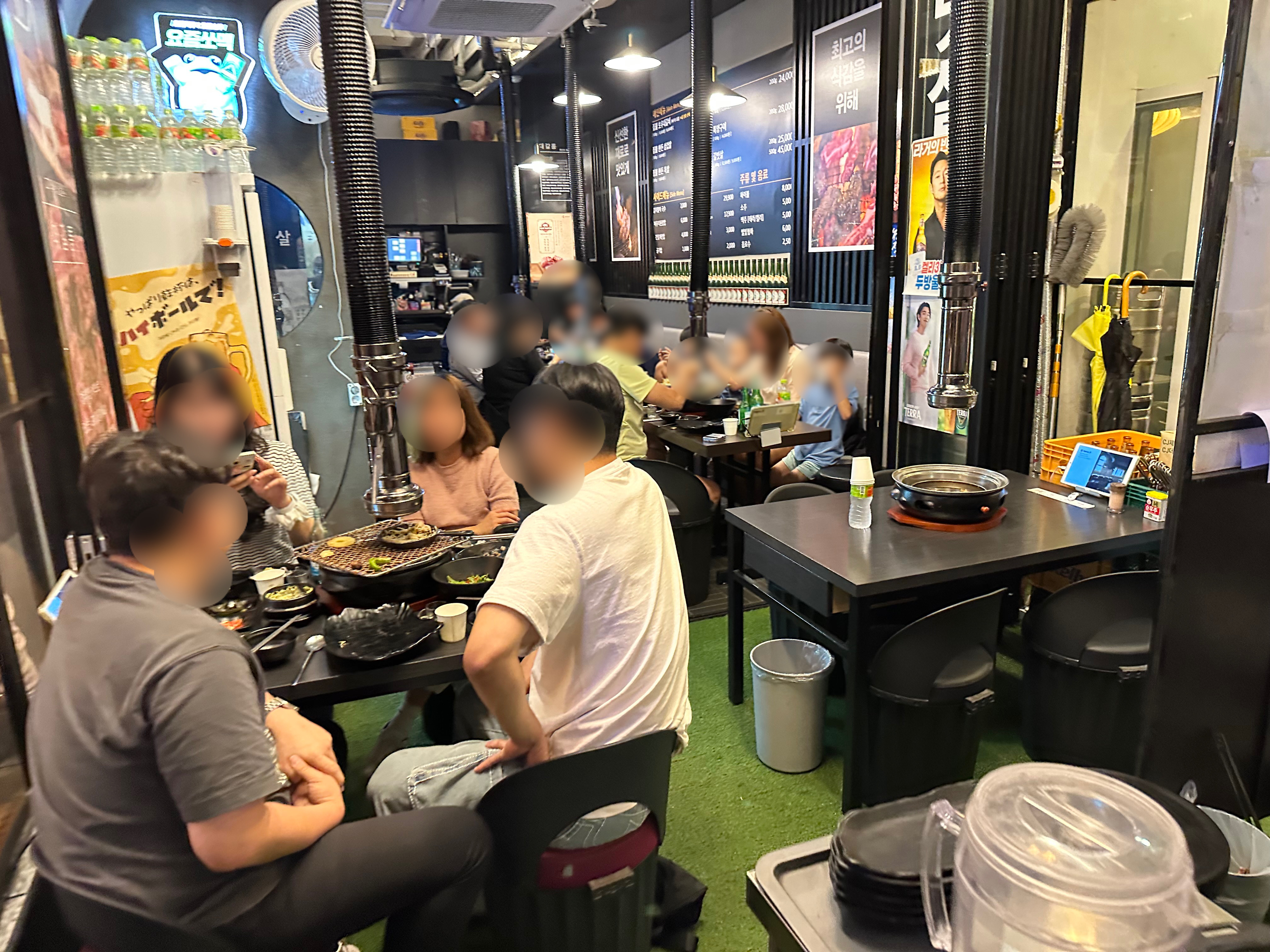 저녁 8시에 방문했는데 만석이여서 약 20분간 웨이팅을 한 후 입장하였습니다. 아무래도 몇 자리 없고 고기에 술을 같이 드시다보니 회전이 좀 느린편입니다. 테이블은 약 6개정도 있었던 것 같습니다.