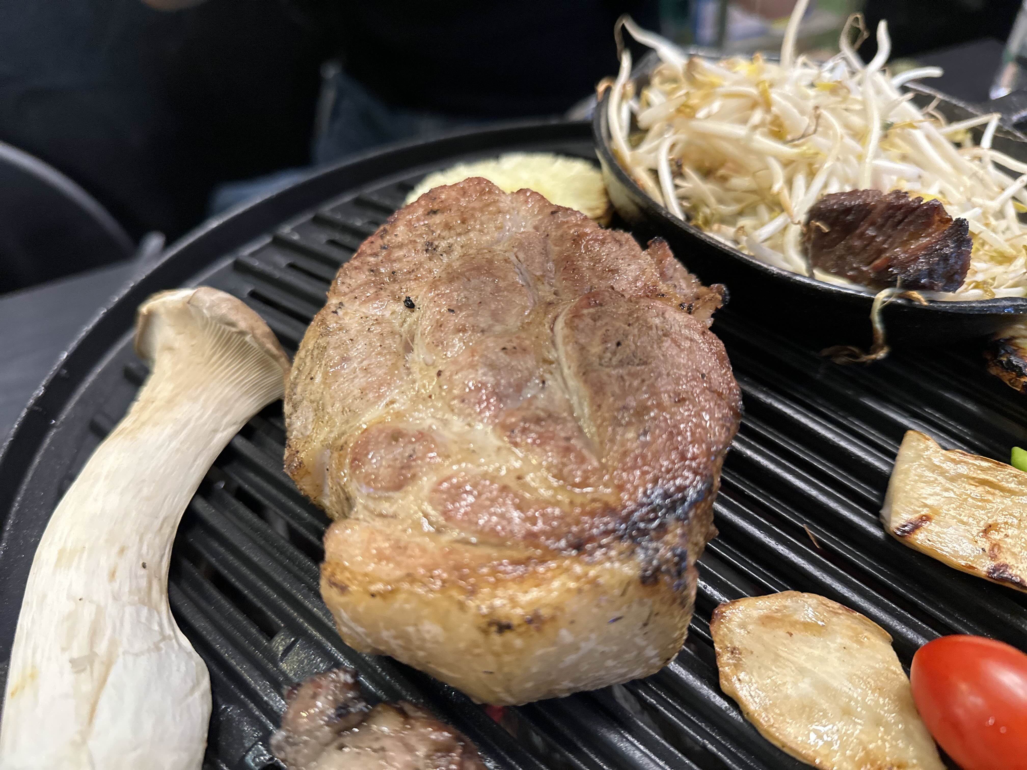 짚불로 초벌을 한 두툼한 목살도 안쪽은 연분홍색 원육이 아주 신선함을 보여주는 듯합니다. 목살도 진짜 너무너무 부드럽고 고소하고 맛있었습니다.