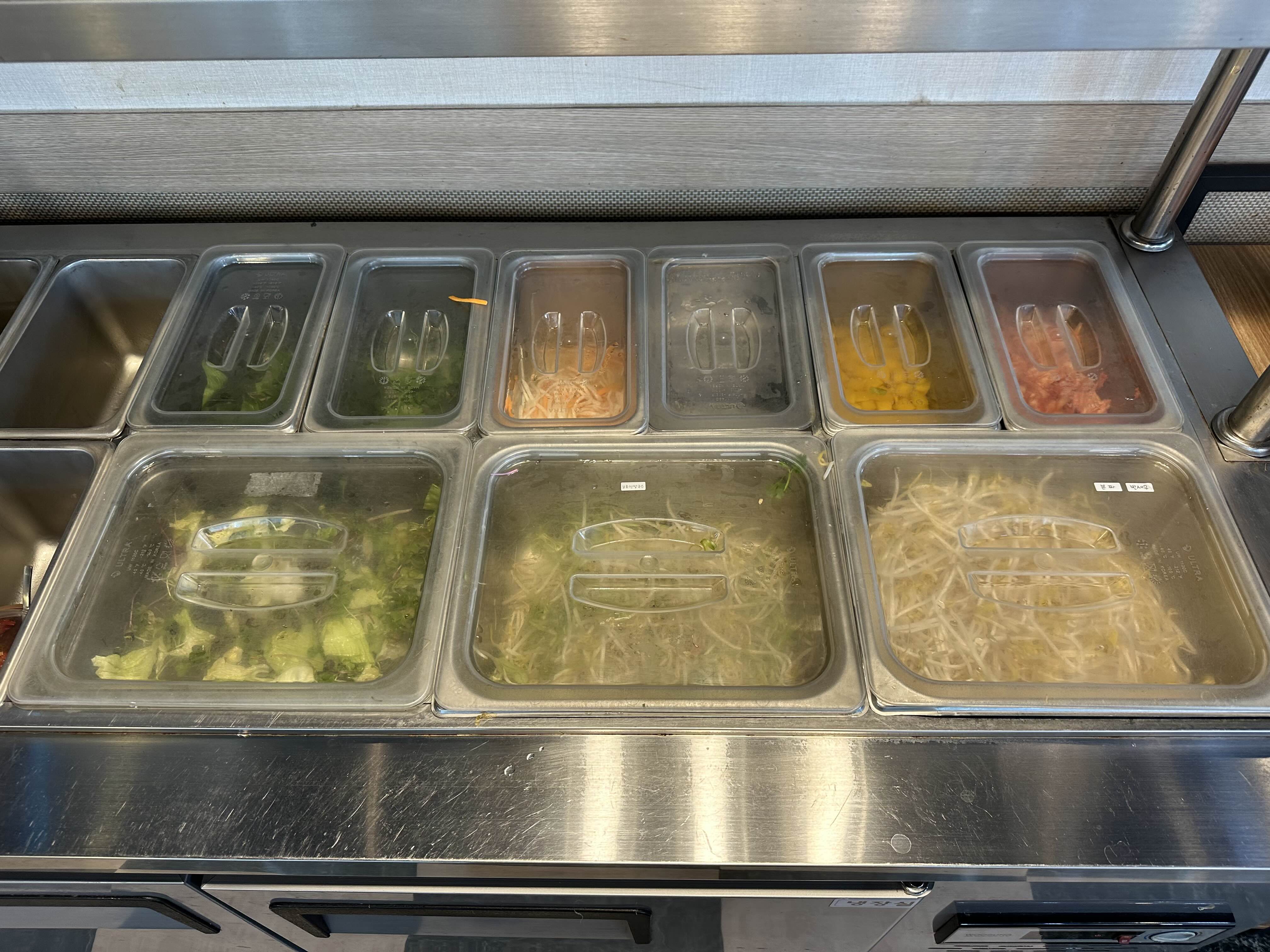 셀프바에 샐러드, 단무지, 김치, 숙주 등이 있습니다. 숙주는 생 숙주고 데쳐달라고 하면 데쳐주십니다.