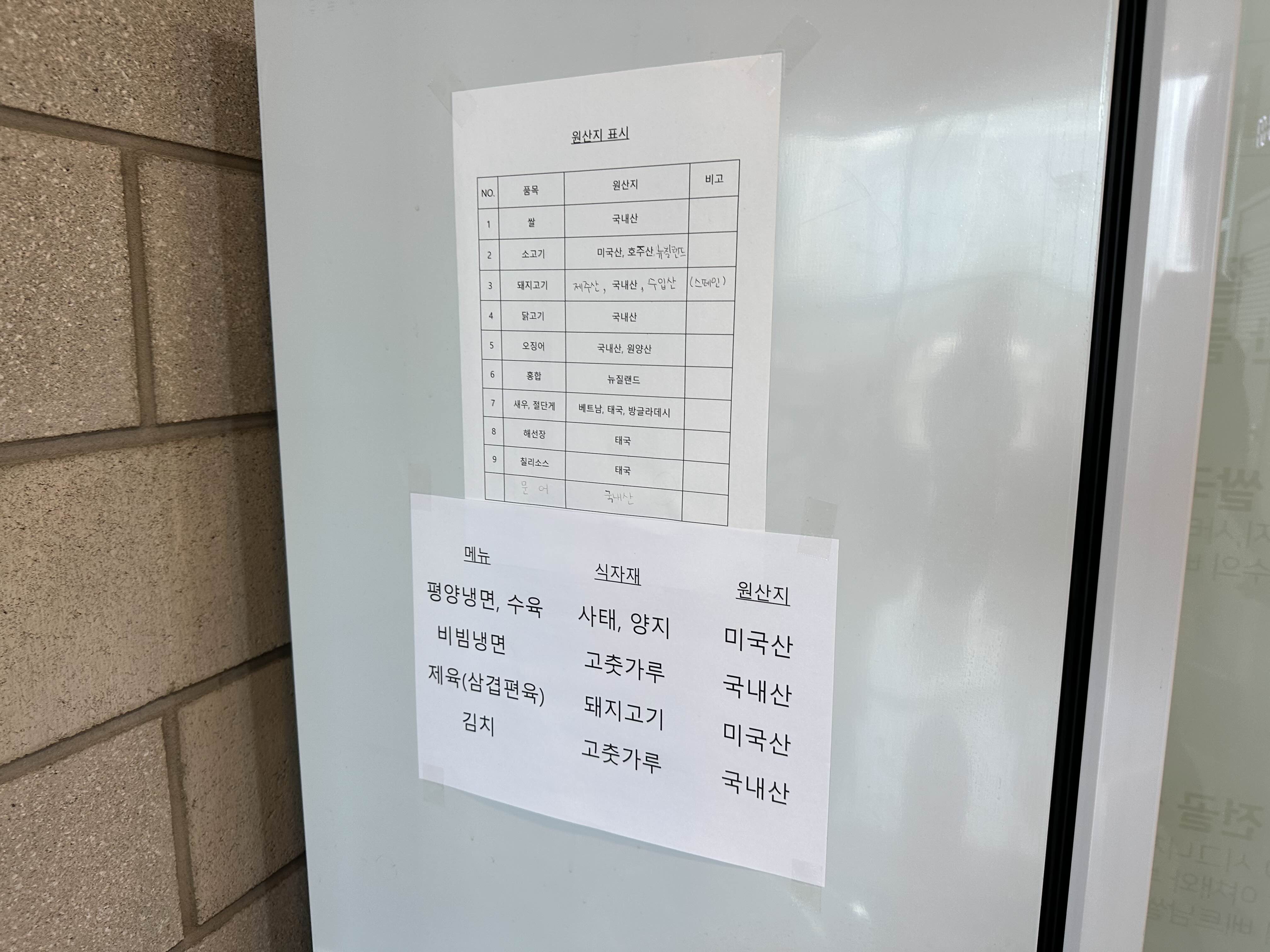 원산지 표시가 가게 한켠에 표시되어 있습니다.