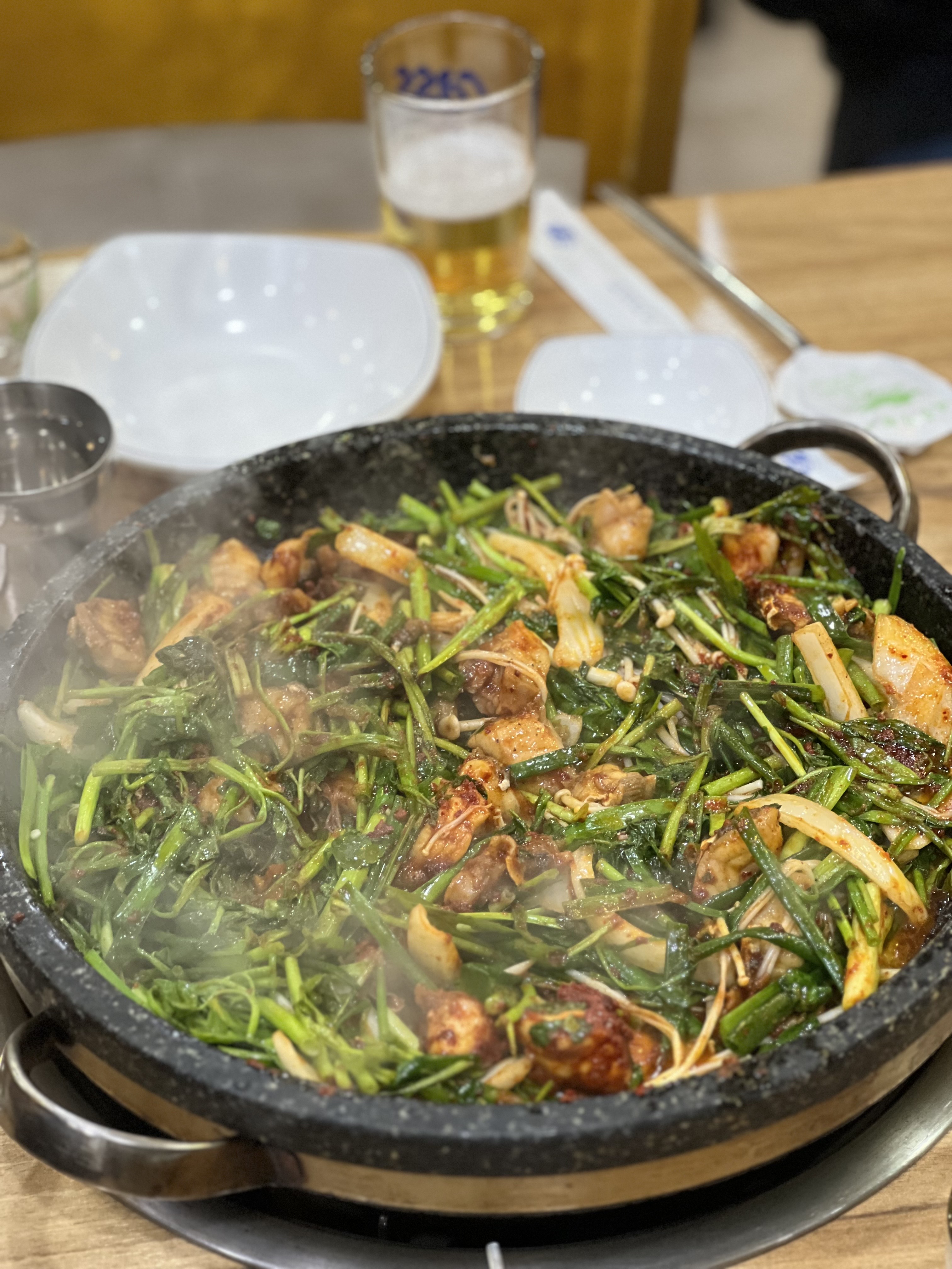 지글지글 맛있게 끓는 복불고기가 나왔습니다.