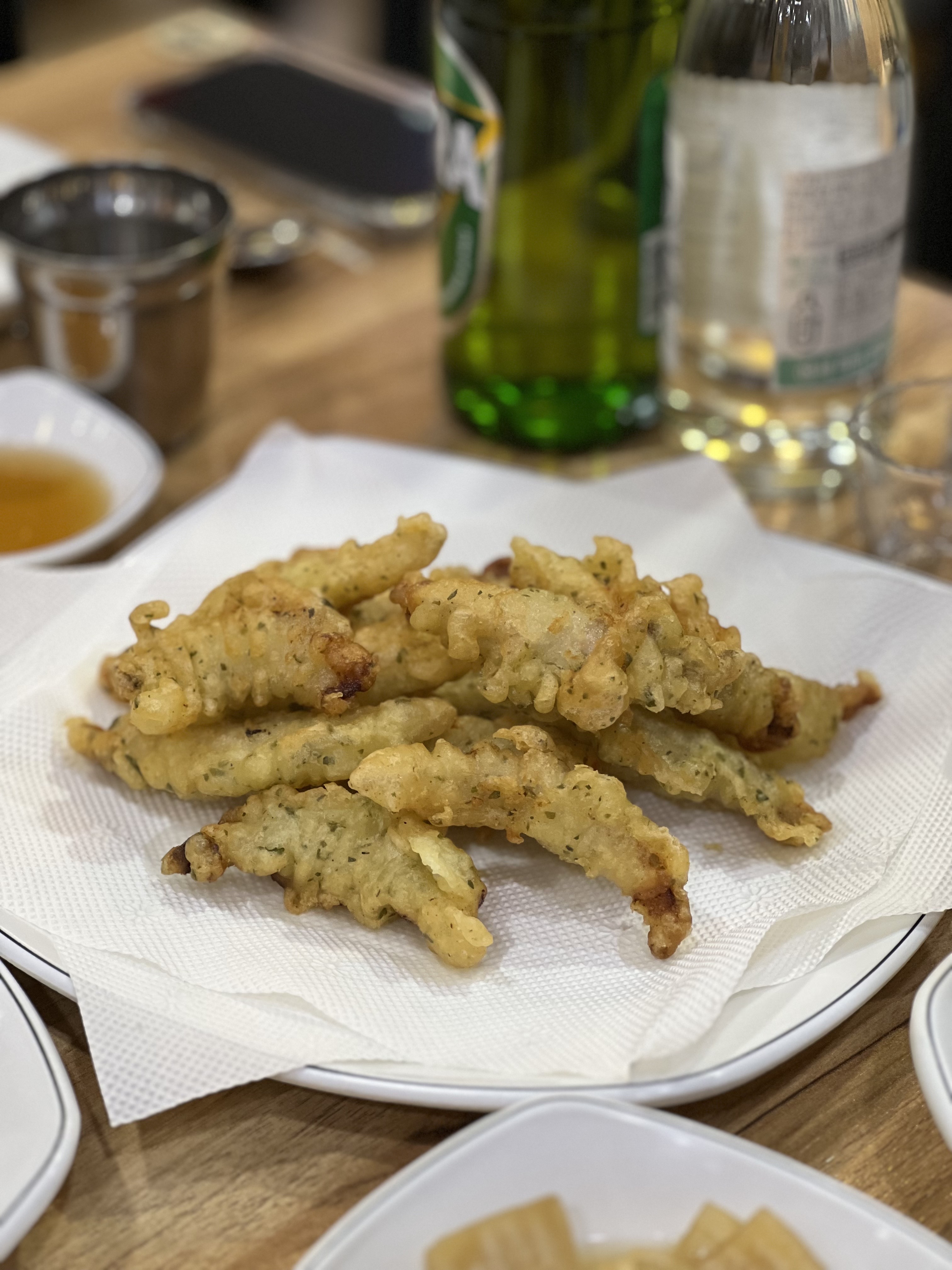 껍질을 먹고 있으니 뜨끈하고 바삭한 복튀김이