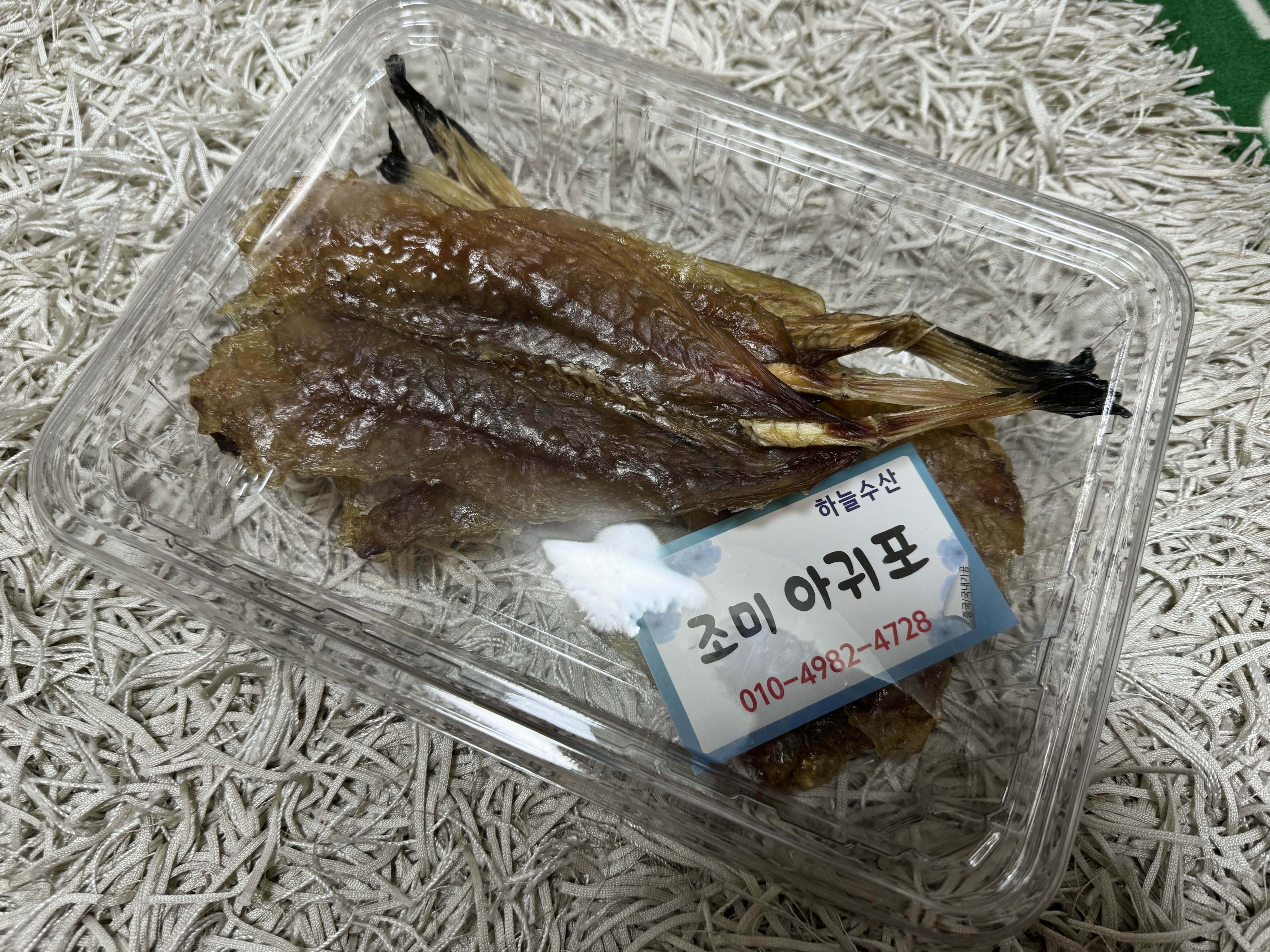 아귀포는 손바닥보다 크고 6개였나 7개였나 들어있었습니다. 구워먹으니 짭짤하게 간이 되어있어 맛이 좋았습니다.