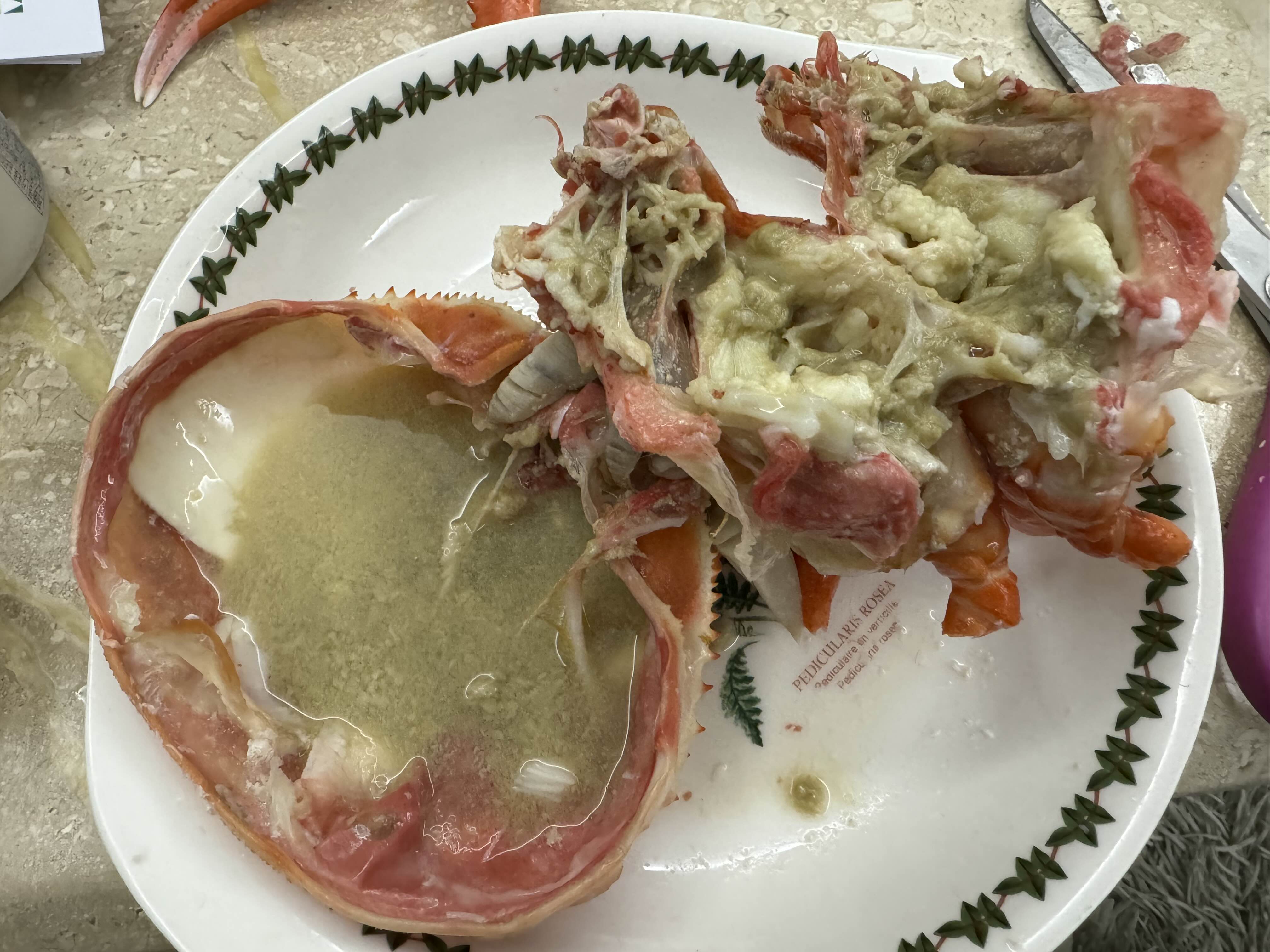 몸통이 진짜 대~~~박입니다. 신선한 대게는 잘 삶으면 장이 등딱지에 있지 않고 몸통에 붙어있다는데 몸통 안에 장이 꽉 차있었습니다. 비록 가장 맛있다는 황장은 아니었으나 녹장도 녹진한 단 맛이 아주 훌륭했습니다. 몸통살과 같이 베어물면 진짜 장의 녹진한 맛과 살의 단단하면서도 단 맛이 너무 맛있었습니다.