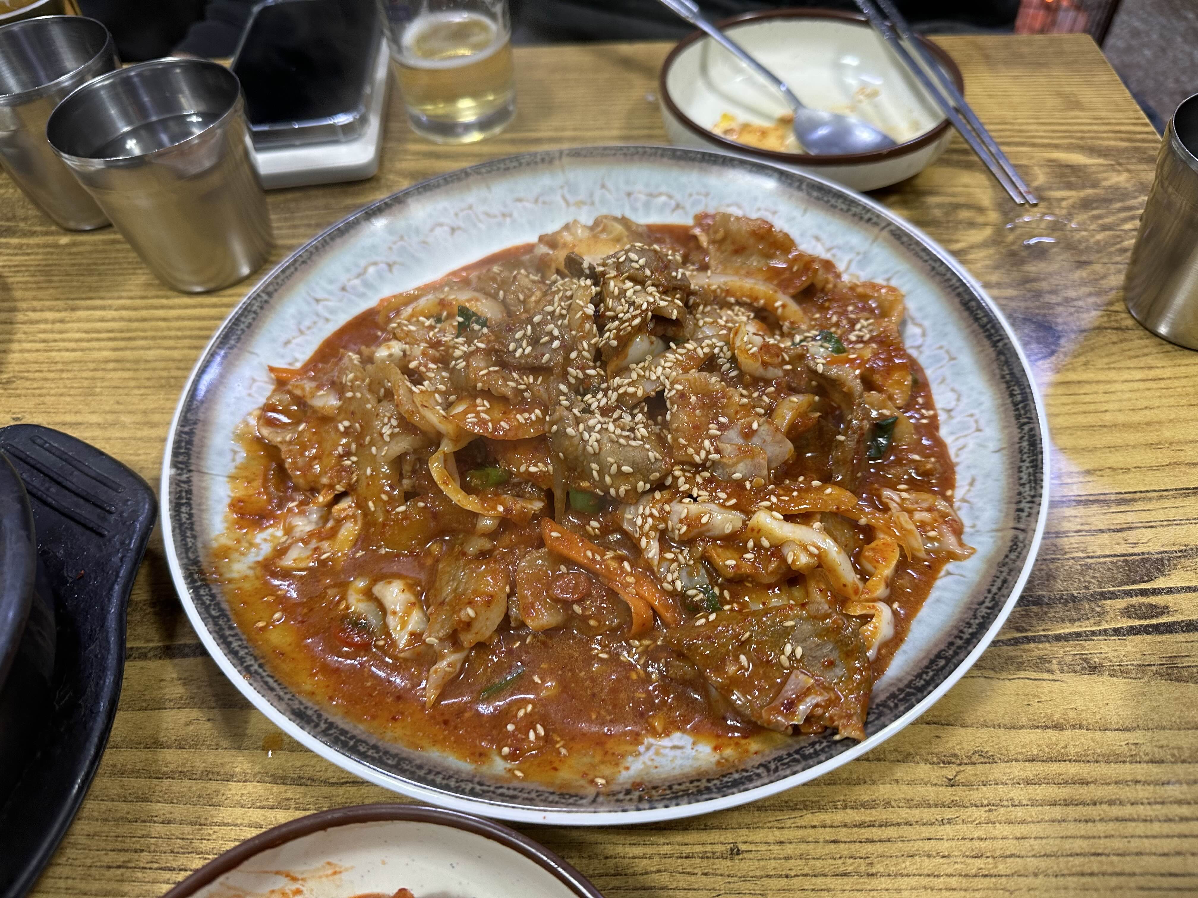 제육볶음이 나왔습니다. 큰 접시에 나와