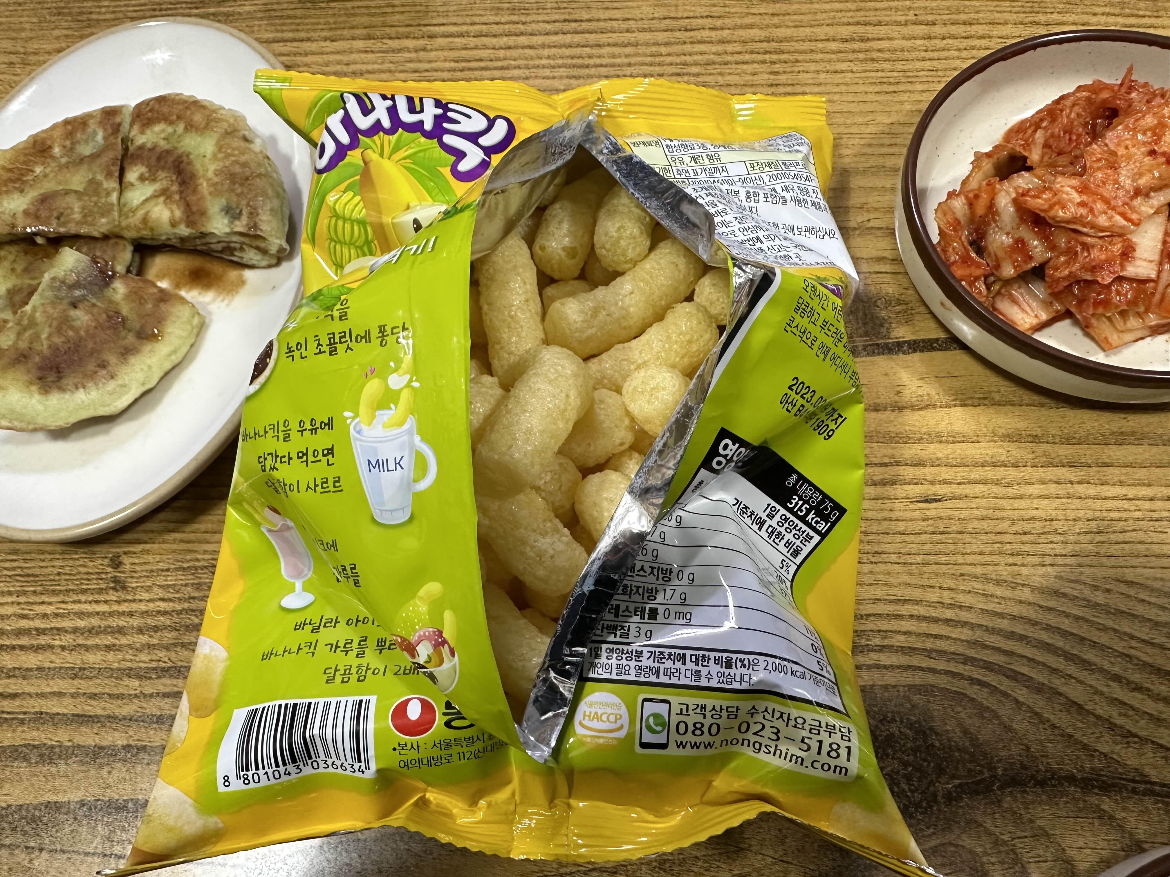 뒤에 있는 바나나킥 한봉지 뜯었습니다.