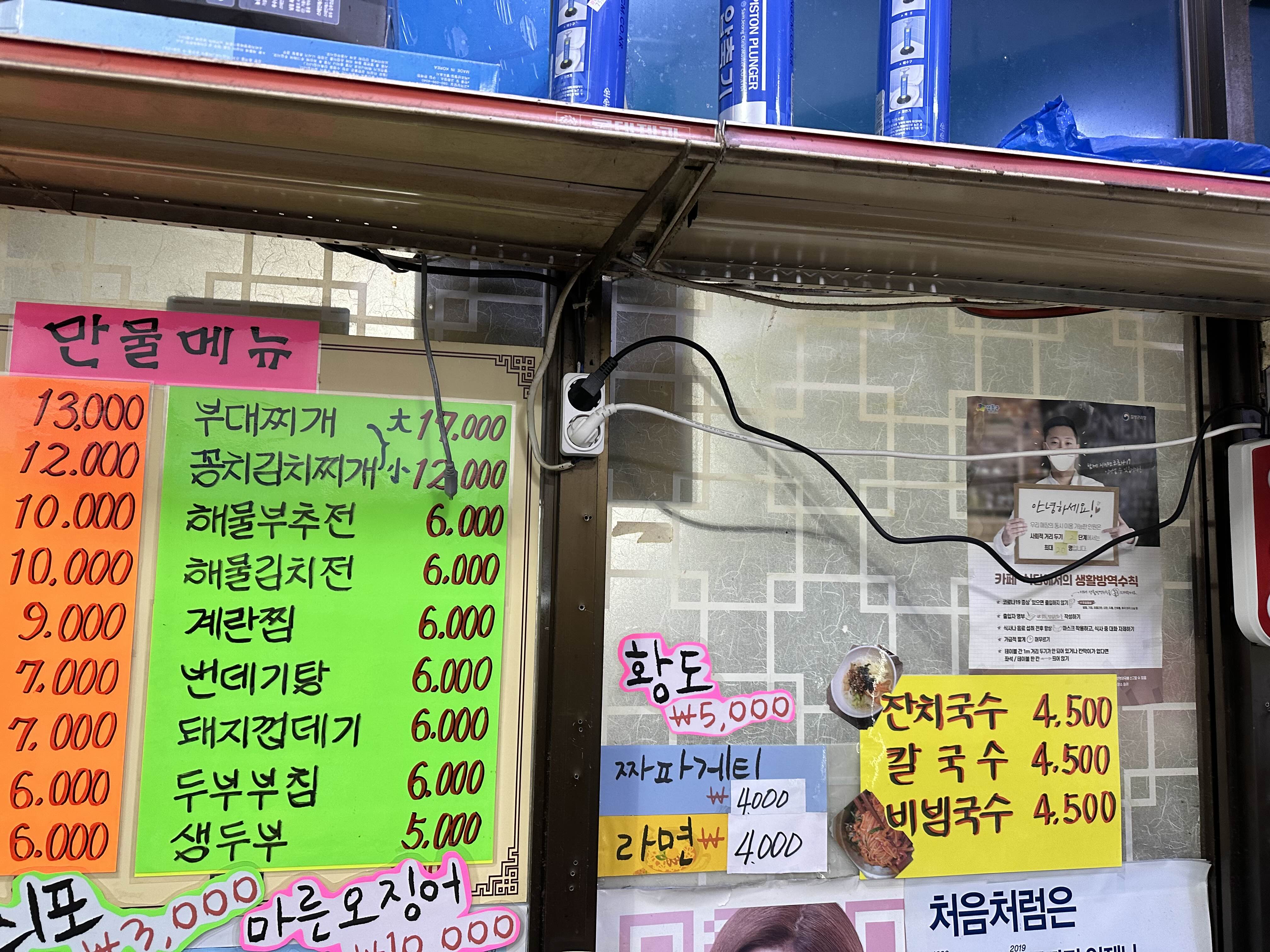 메뉴입니다. 가격이 상당히 저렴합니다.