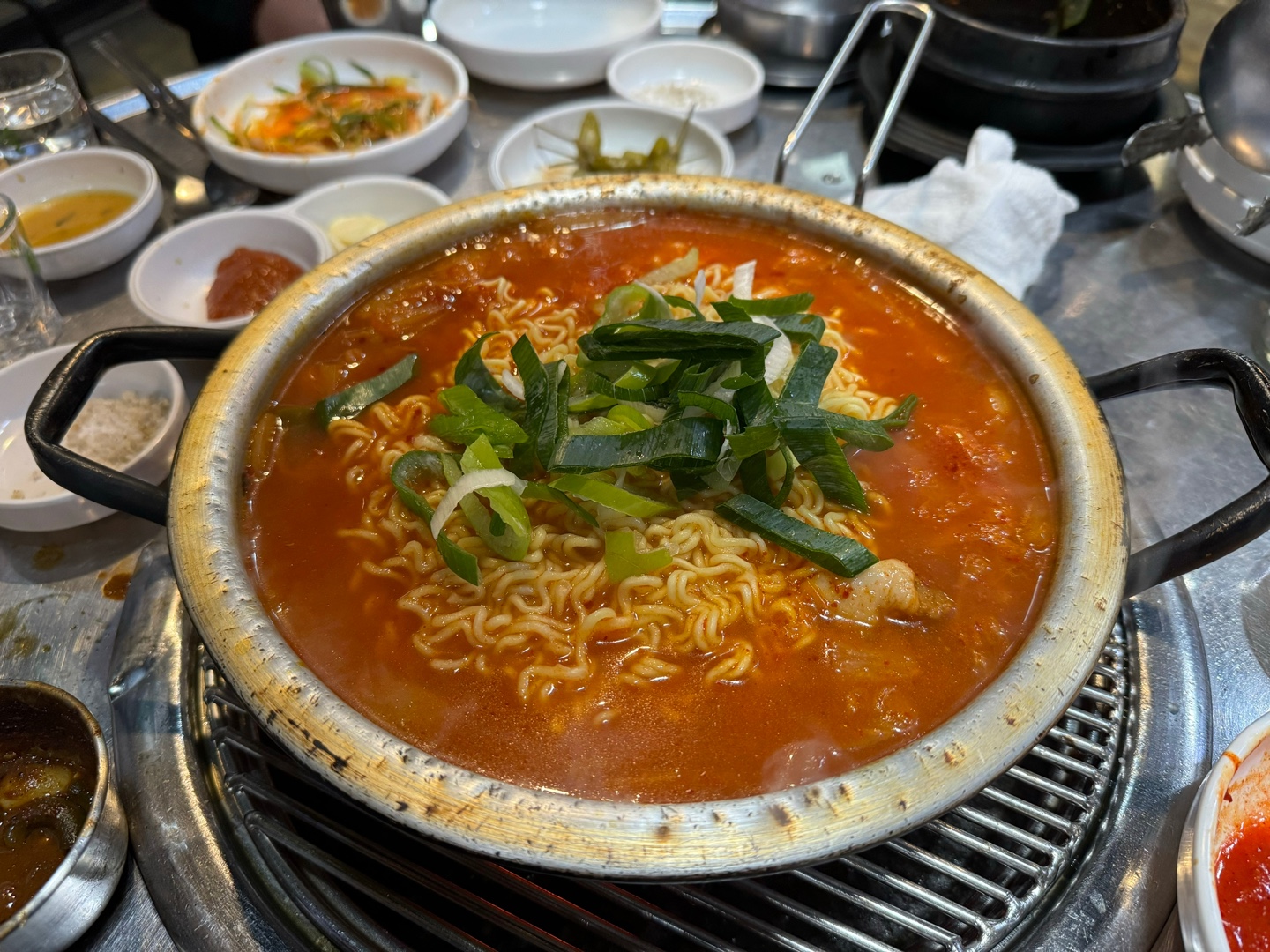 오창 맛집 제주한라돈의 또 다른 별미 김치찌개에 라면사리를 추가해서 주문했습니다. 찌개 2인분에 라면사리 2개 추가했습니다.