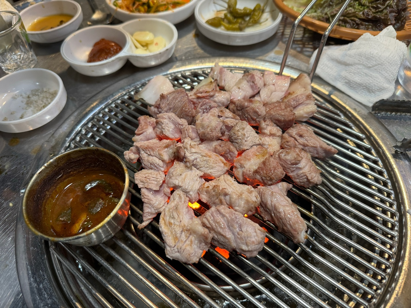 목살과 더불어 쫀득한 부위의 목살 아닌 느낌의 고기가 있어 사장님에게 물어보니 목살 뒤에 붙어있는 부위라고 뒷고기집에서 꼬들살로 판매를 하는 그런 부위라고 했습니다. 꼬들살도 상당히 쫀득하고 맛있었습니다.