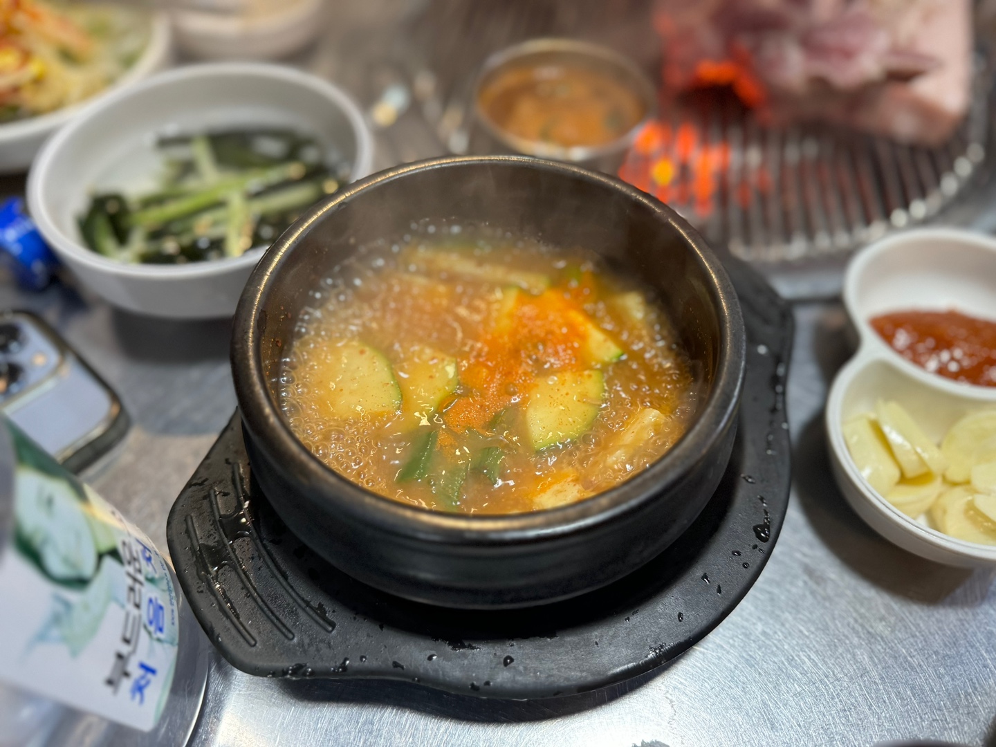 기본으로 나오는 된장찌개는 딱 전형적인 맛있는 고깃집 된장찌개였습니다. 두부도 큼직하고 호박도 듬뿍 들어 있었습니다.맛이 괜찮아서 천원으로 추가해서 먹었습니다.