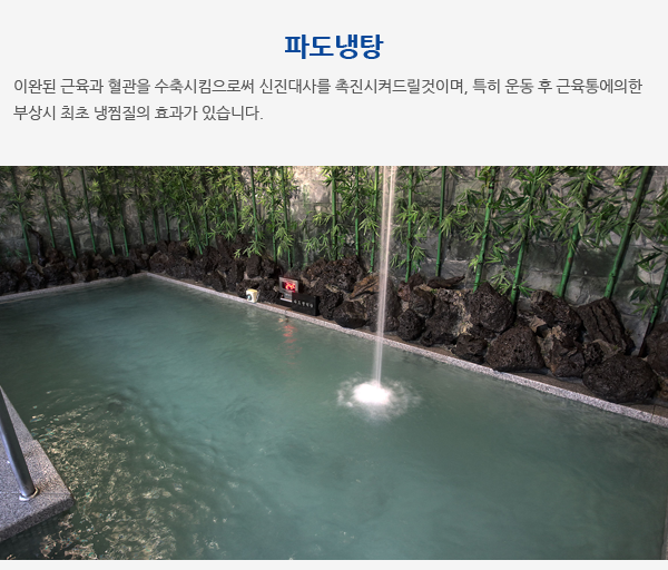 냉탕은 1.2미터 정도의 높이고 넓은편입니다. 온도는 23도정도여서 완전 차갑진 않고 시원한 정도입니다.