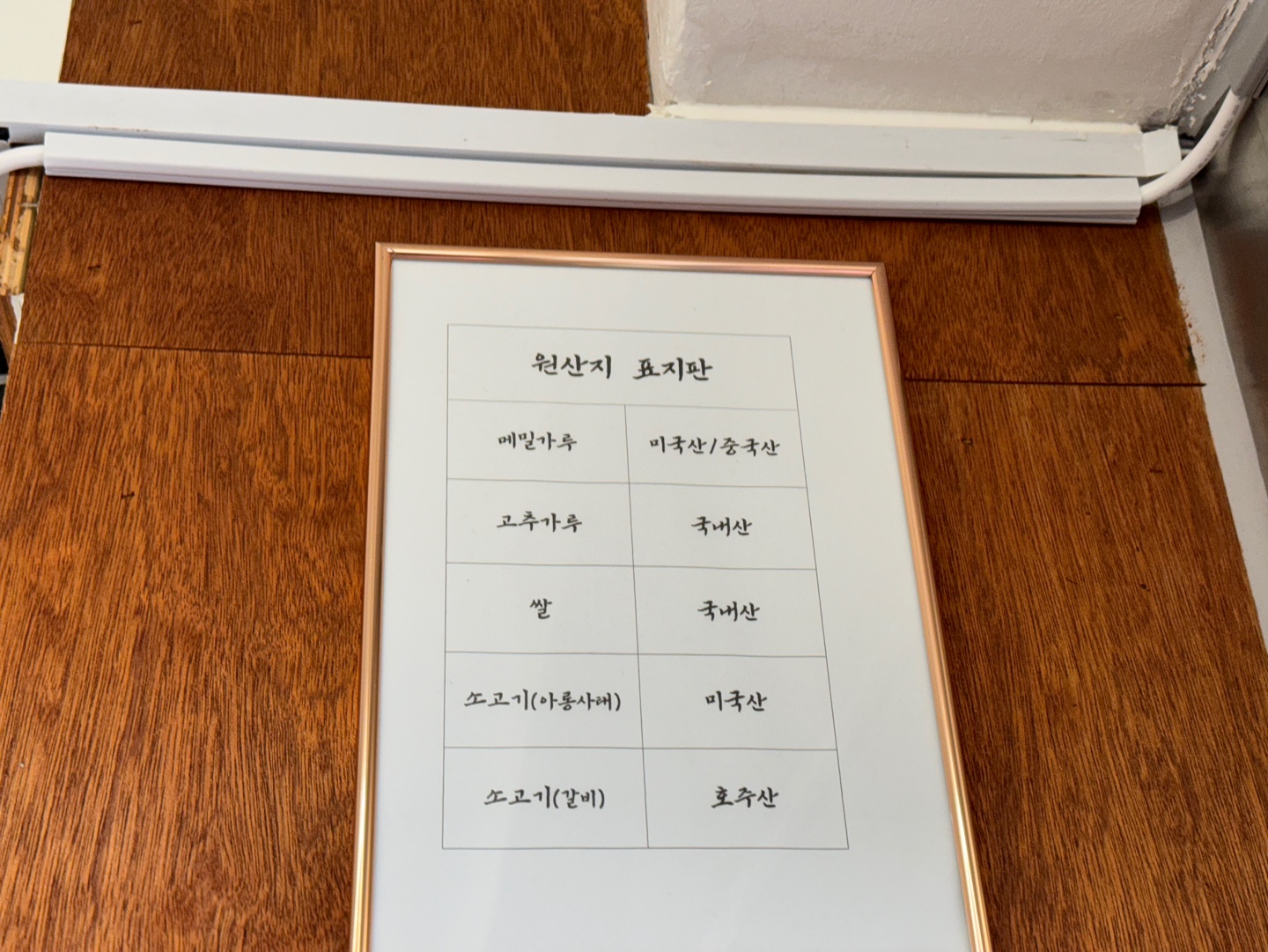 금야면옥의 메밀은 미국산, 중국산이고 고춧가루와 쌀은 국내산, 아롱사태는 미국산, 갈비는 호주산을 사용합니다.