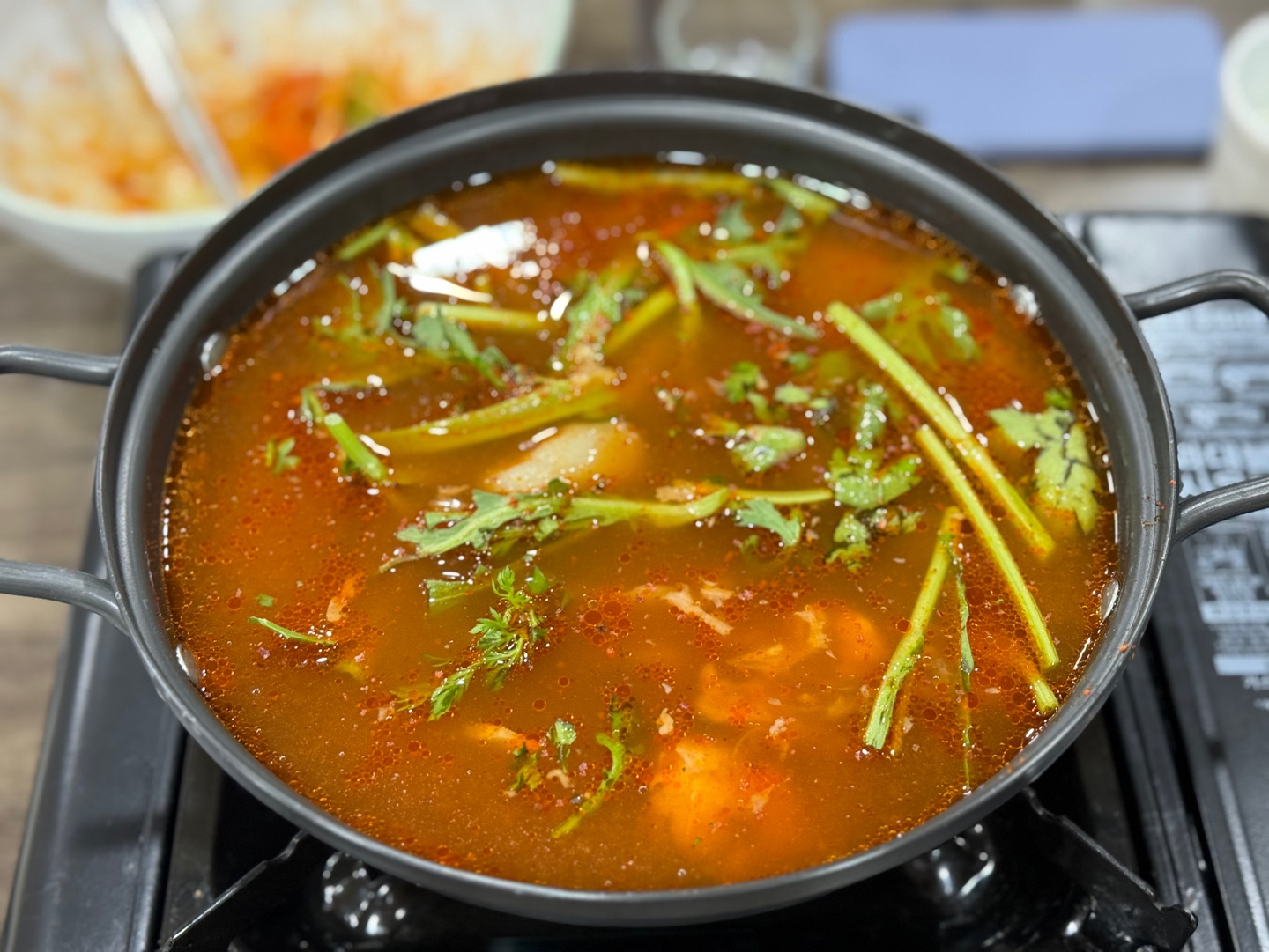 매운탕 국물은 마늘이 많이 들어간지 마늘의 감칠맛과 칼칼함이 매우 맛있었습니다. 매콤한 국물이었지만 손이 계속 가는 그런 매운탕 국물이었습니다. 마무리 하기에 아주 좋았습니다.