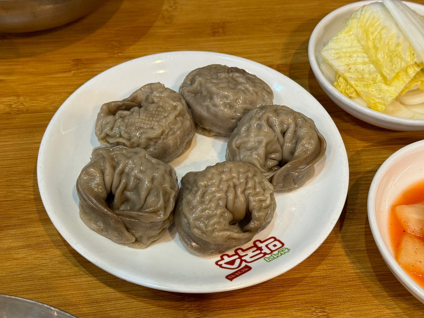 메밀왕만두는 고기와 두부 부추 파 등이 잔뜩 들어있어 맛도 고소하고 좋고 식감 모두 좋았습니다. 사이드로 먹기 좋았습니다.