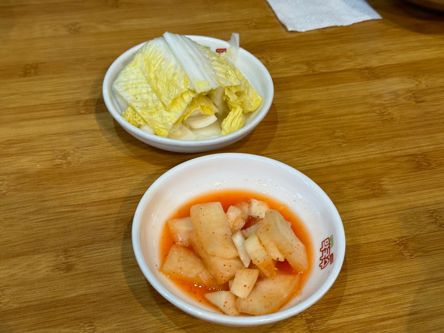 기본찬으로 백김치와 깍두기가 나옵니다. 백김치는 깔끔해서 막국수와 잘 어울립니다. 깍두기도 시원한 맛에 슴슴한 맛입니다.